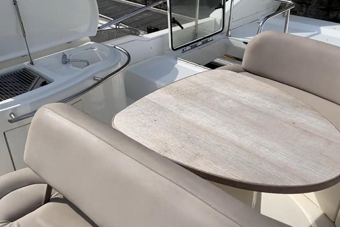 The Azimut 58 is a remarkable motor yacht that combines stylish elegance with performance and comfort. Her sleek European lines are timeless and the ruggedly constructed deep-V hull ensures a safe and stable ride. The Azimut 58 accommodates (6) overnight guests in (3) separate well-appointed staterooms with (3) heads/showers.Boarding is made safe and easy by way of the extended aft swim/boarding platform. From here one finds easy access up to the cockpit/aft deck through transom gates on either side. The aft deck itself offers port and starboard sidewalk access to the foredeck where one finds a large double-wide sun pad. The teak decking on aft deck and swim platform add the perfect touch. The aft deck also provides secondary in-deck hatch access to the engine room, ladder access up to the spacious flying bridge and forward-facing bench seating with lazarette / crew quarters access beneath. Passerelle boarding is also accommodated with a built-in (hidden) gangway attachment and step. The extended fly bridge overhang gives partial cover to the aft deck below and there are warping (docking) winches in each aft corner.The flying bridge layout offers generous circular seating offset to port. This comfortable settee features a removable table and lends itself to outdoor entertainment. To starboard is a full wet bar with a built-in barbecue grilling station. A 2-person sun lounge expands the flying bridge and overhangs the deck below. The upper station's centerline helm is situated completely forward on the bridge and offers a terrific vantage point from which to operate the vessel. This command center features full controls and complete navigation electronics. The practical design incorporates an adjustable backrest shared between the settee and the helm's bench seat. Finally, there is a single companion seat to starboard under a folding Bimini top.The main cabin is accessed into the salon from the aft deck through a large stainless-steel-framed sliding door. A dry bar is immediately to port upon entry with the full galley located to port and down. The salon is bright with natural light and generously curved leather seating encircles this spacious living area. The TV/entertainment center is forward and to port and there are two salon tables, one coffee table and a second having the ability to expand from a cocktail into a dining table. This social area is sure to impress with its elegant high-gloss woodwork and furniture with decorative inlays.The elevated wheelhouse is forward in the salon and offers a high-back leather power adjustable captain's chair and companion seating. Visibility from this lower interior helm station is excellent.The starboard side companionway leads forward and down to the staterooms and heads located forward in the hull. The luxurious master suite features (2) hanging lockers and an island-style queen size bed with a bedside table. The master also offers a private head with separate shower stall. The Azimut 58 also offers a VIP stateroom and 3rd guest stateroom with twin beds. The VIP has a double berth angled from the port aft corner and its own private head and shower stall. The third head/shower is along the port side, and the twin cabin is located on the starboard side. Each stateroom has notably spacious storage, hinged privacy doors, great headroom and their own TVs.You and your guests will feel spoiled by the truly comfortable and spacious interior.The hull is white with black accent stripes, black bottom paint and tan upholstery.