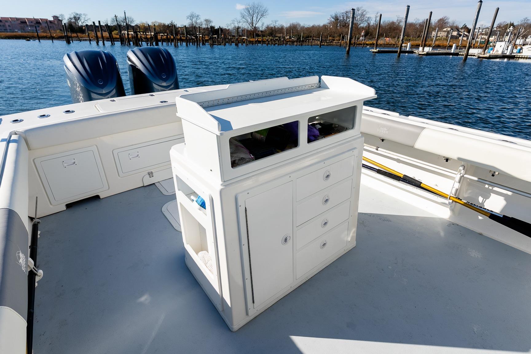 This Steiger Craft 31 Fisherman has been purpose-built for anglers who demand serious offshore capability, maximizing cockpit space, storage, and fishability. Designed with two oversized in-deck fish boxes, a large transom livewell, and extensive tackle storage, the 31 Fisherman delivers true canyon-range performance supported by twin Yamaha 300s and a 325-gallon fuel capacity for 450+ miles of range.