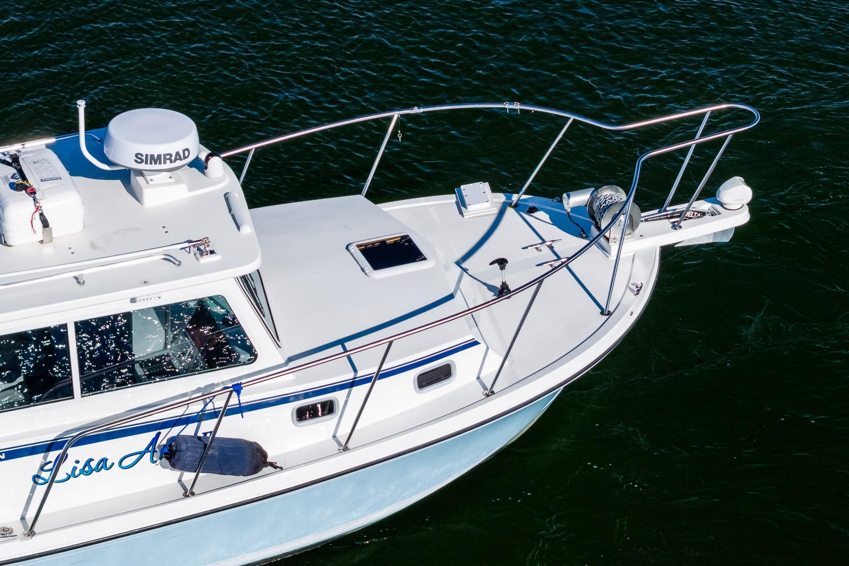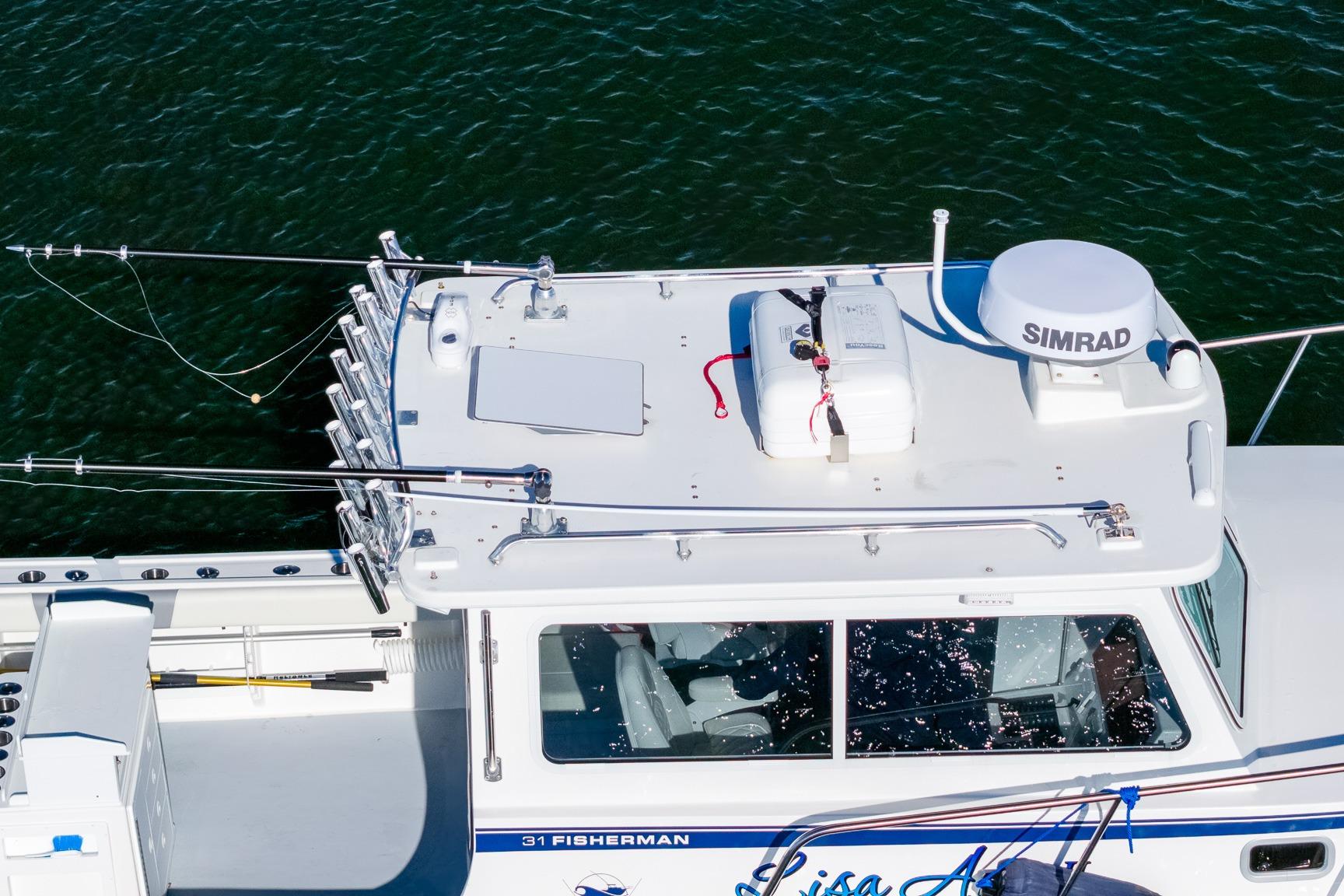 Equipped with a Lone Star drum winch (450’+ rode), Minn Kota Quest Instinct trolling motor with dedicated lithium power, Seakeeper stabilization, Starlink, an advanced Simrad electronics suite, and comprehensive safety systems, this 31 Fisherman stands out as one of the most impressively outfitted models ever built.