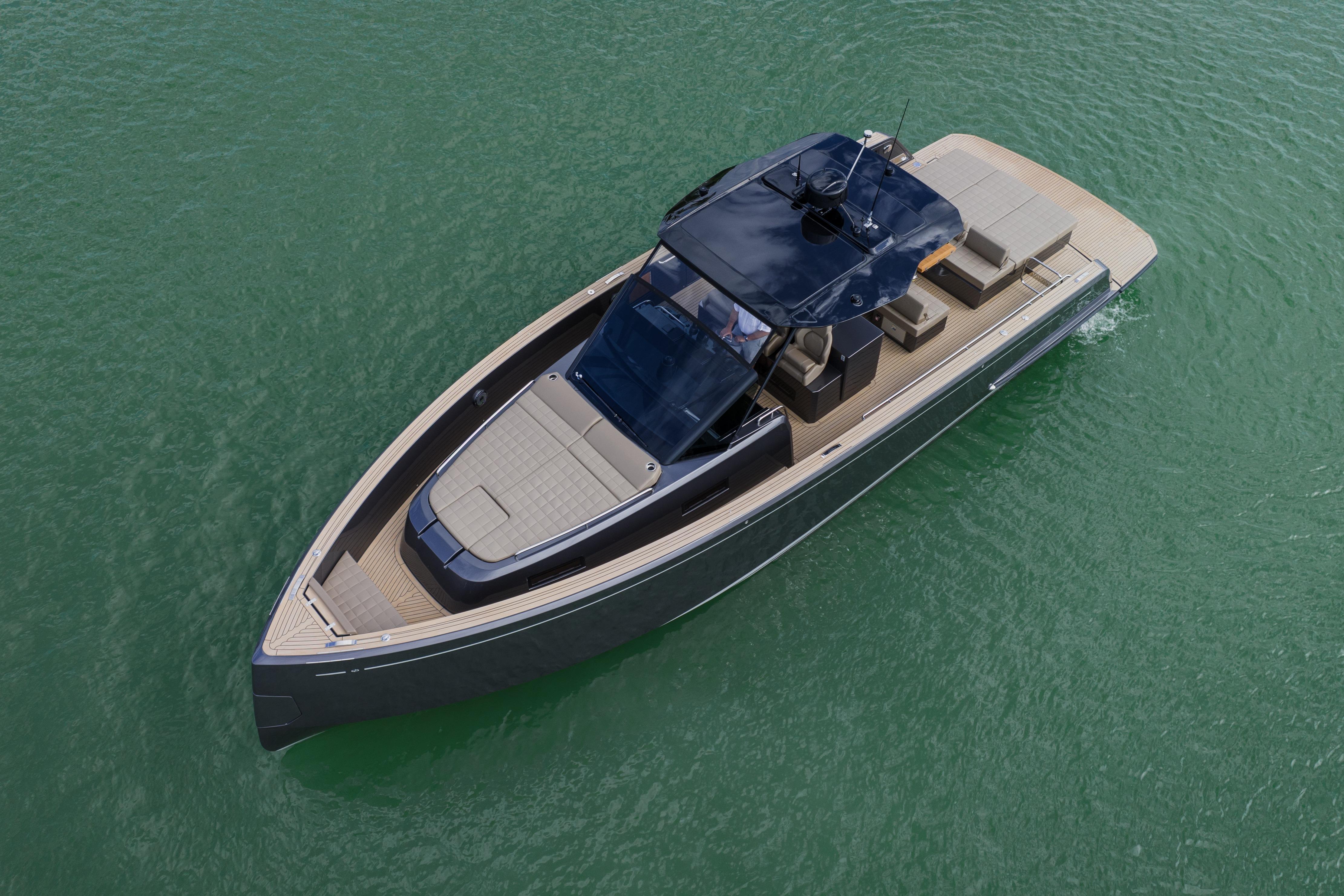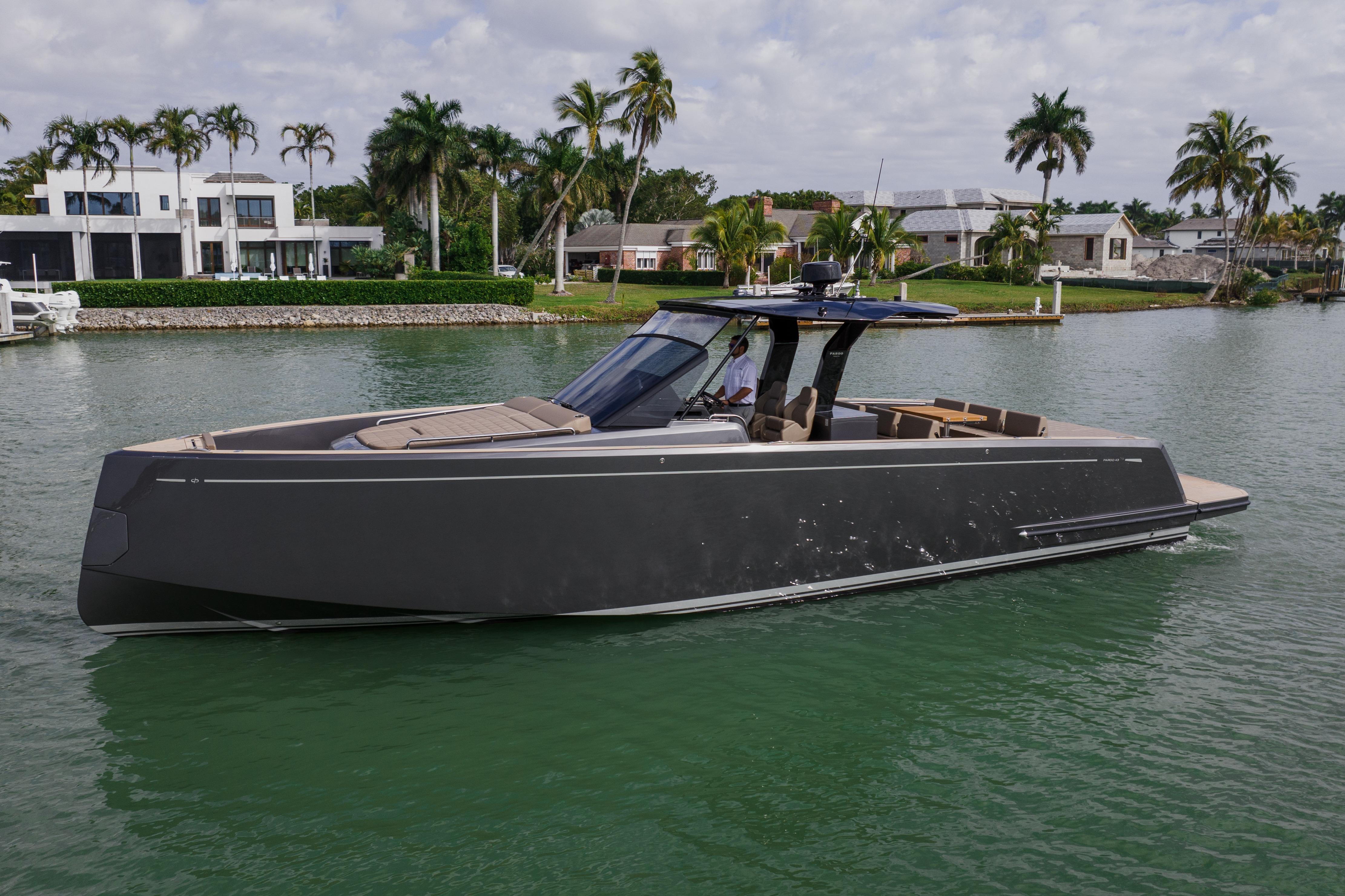 Ultimate Comfort and Entertainment: This motor yacht is equipped for luxury parties with features like a spacious aft sunbed with electric opening, multiple fridges, an ice maker, and exterior Silvertex upholstery. The electric bimini integrated into the T-Top and the long bathing platform with hydraulic lift enhance comfort and convenience.