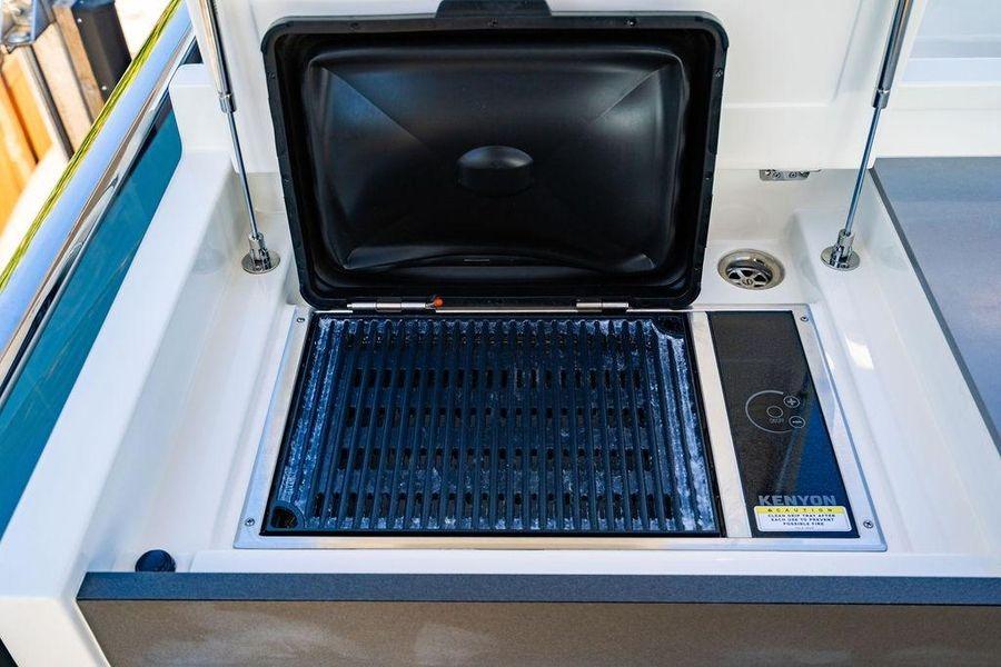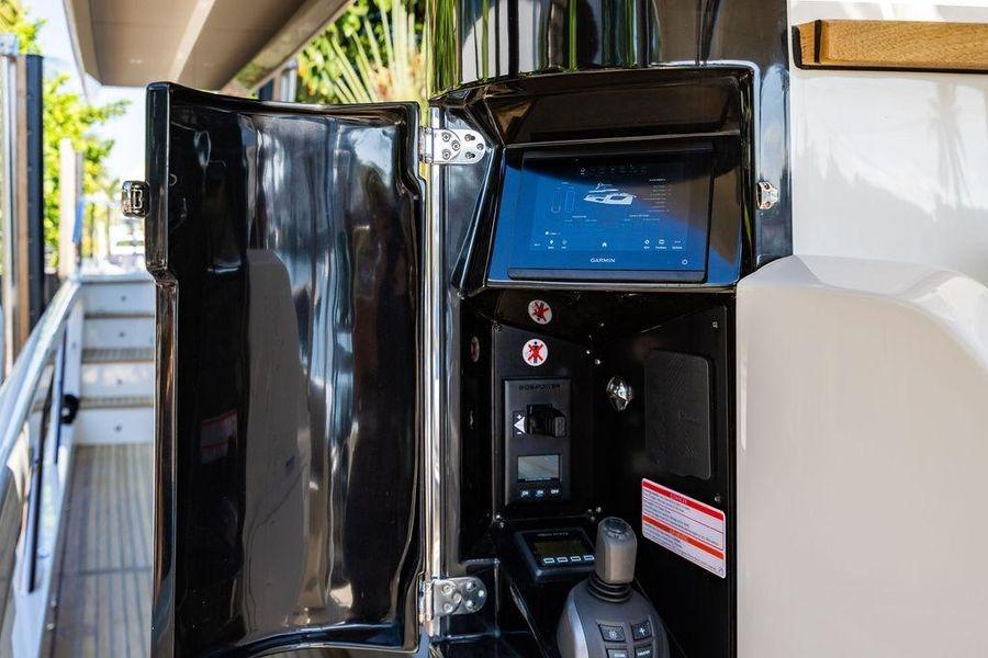 At the helm, four Garmin 22” displays, solid-state radar, AIS weather and identification system, monitoring system, and integrated cockpit and engine room cameras provide advanced navigation and full vessel awareness. Dual 21.5kW generators, a 3000W inverter, bow thruster, and double Racor fuel filtration system support confident cruising and onboard reliability.