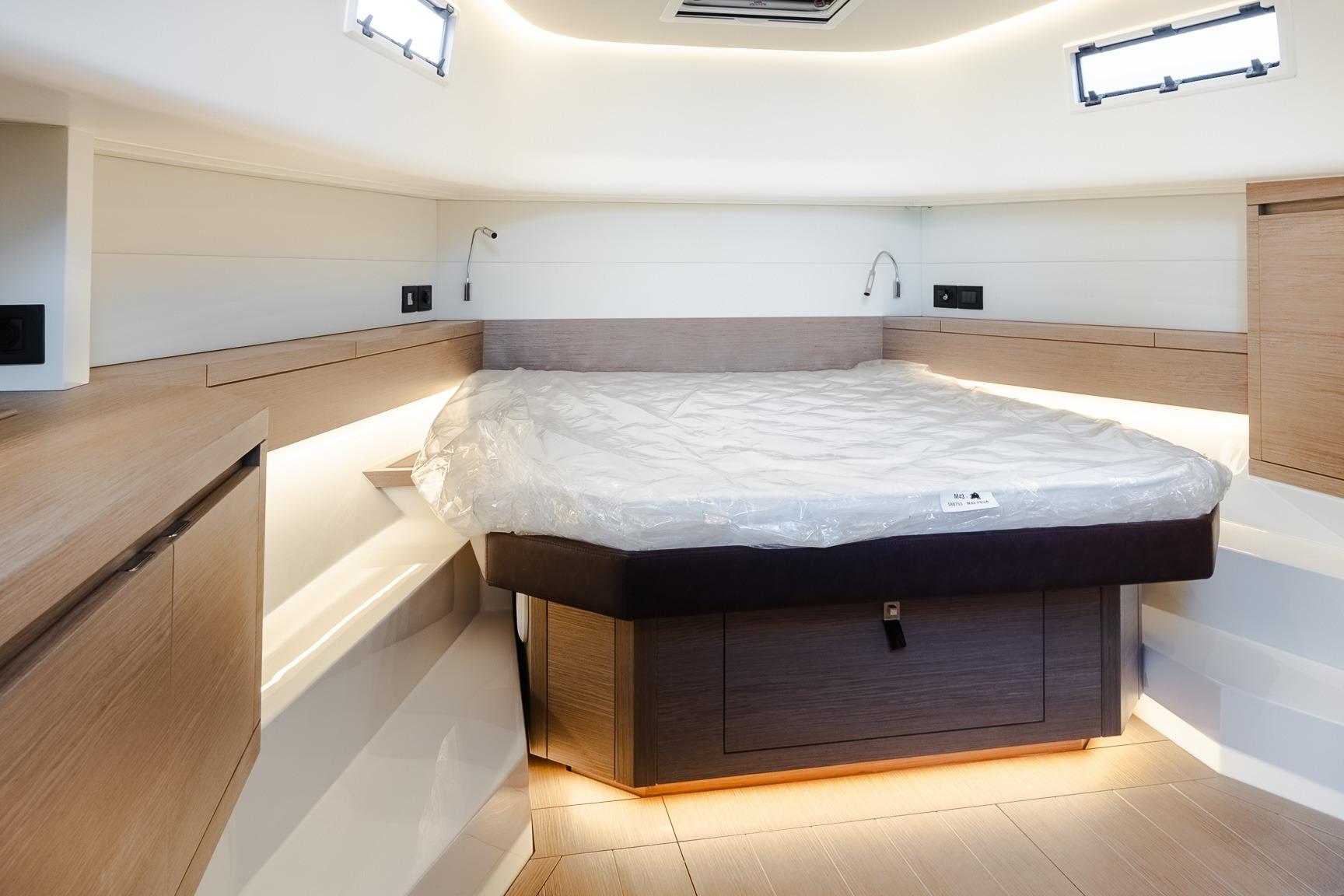 The PARDO 43’s timeless elegance and unique personality are the result of the shipyard's expert craftsmen and a unique design that showcases its innovation, even in the most modern shapes. Thanks to its linear and refined furnishings, the Pardo 43 interior reflects the excellence that is synonymous with Made in Italy, characterized by a careful choice of wood veneers and meticulous workmanship.