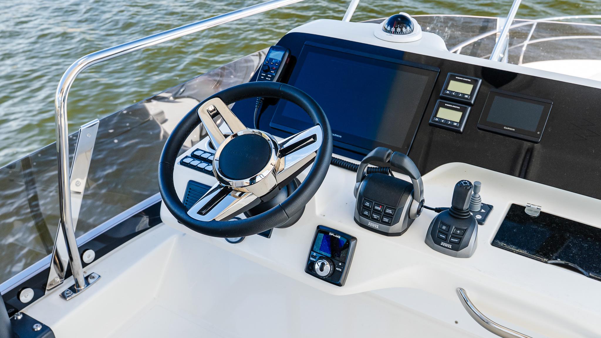 (2) Multifunction 12" displays, Lower helm; (1) 16" Display on bridge, VHF Garmin, Garmin Autopilot for IPS, Volvo Interface, (2) Dummy SAT Domes GT V5, Radar Fantom 18, AIS Receiver, Chirp Clearvu Sonar