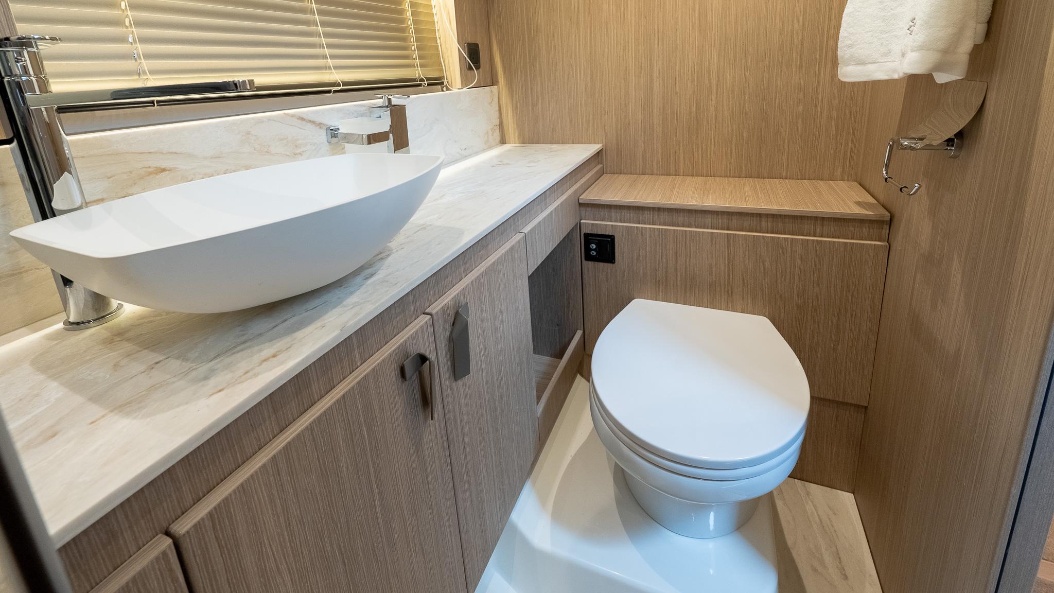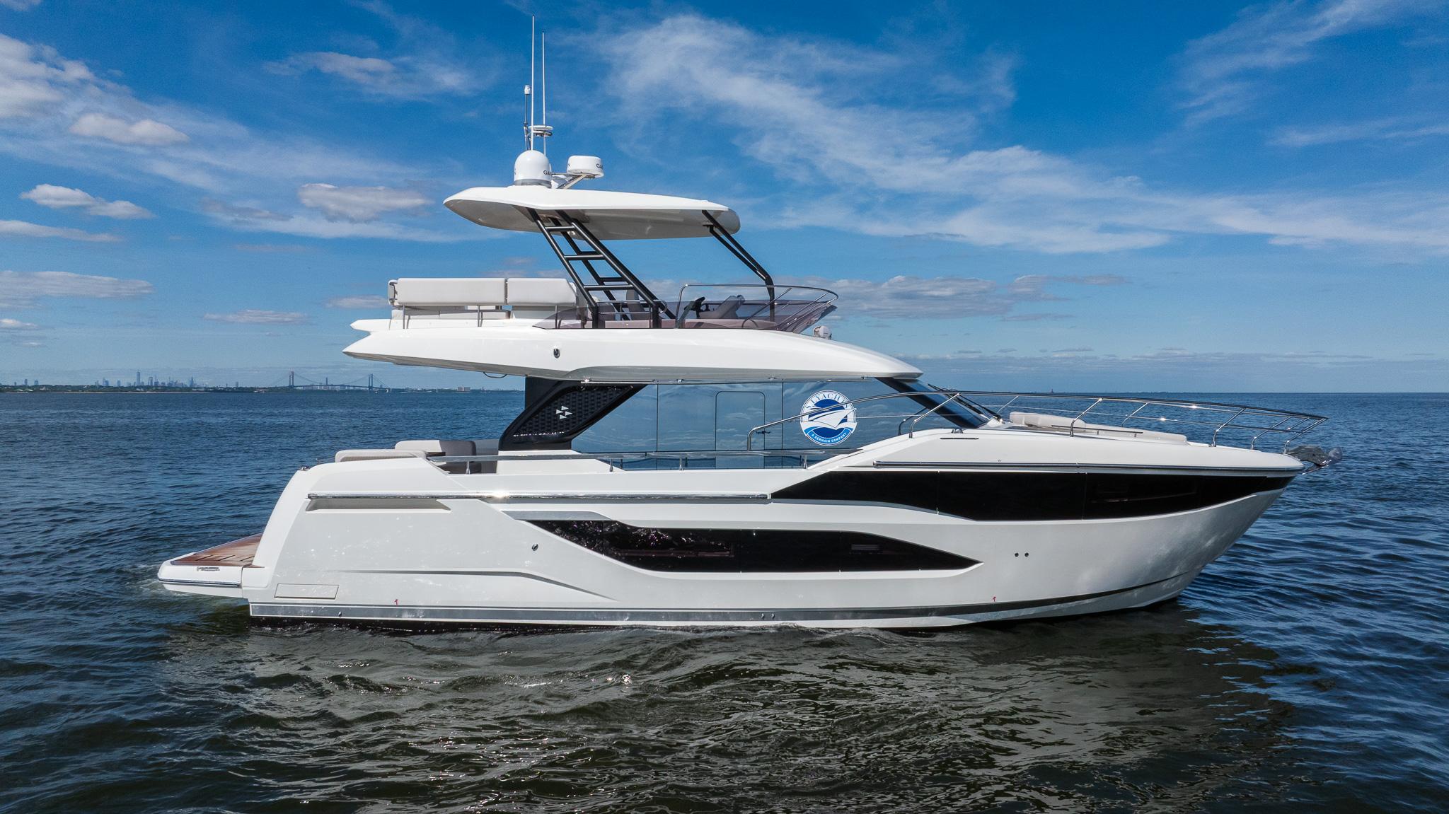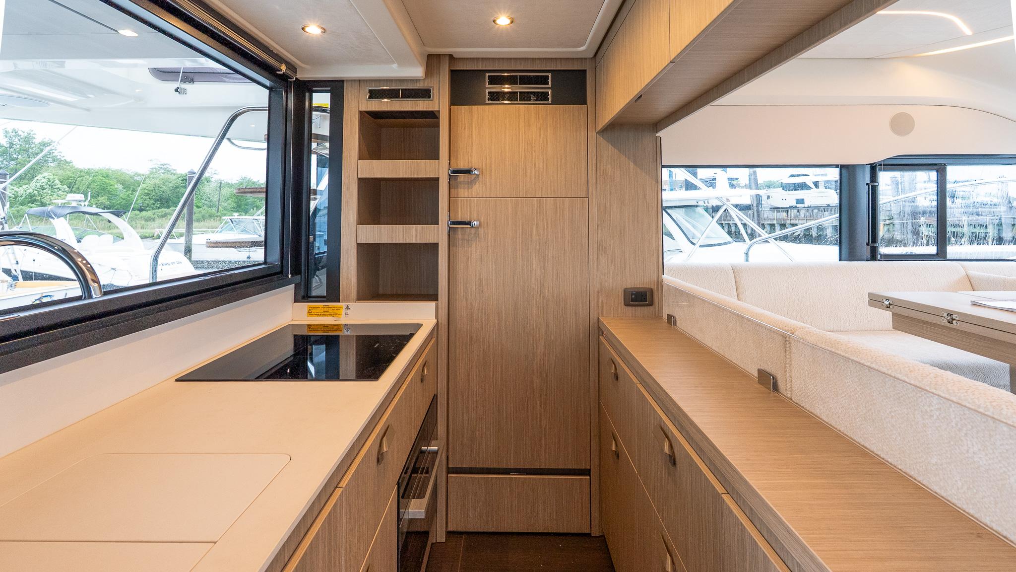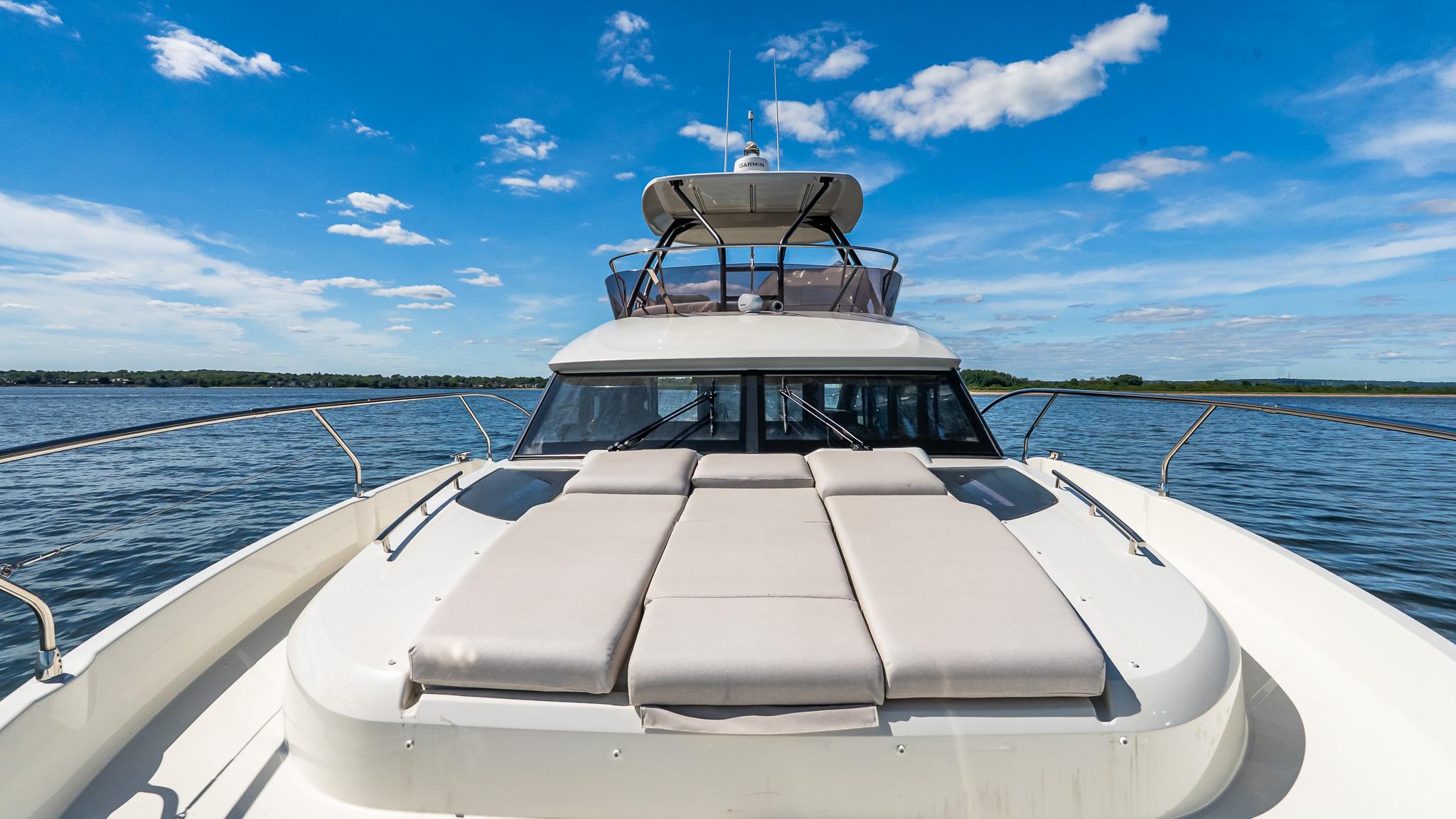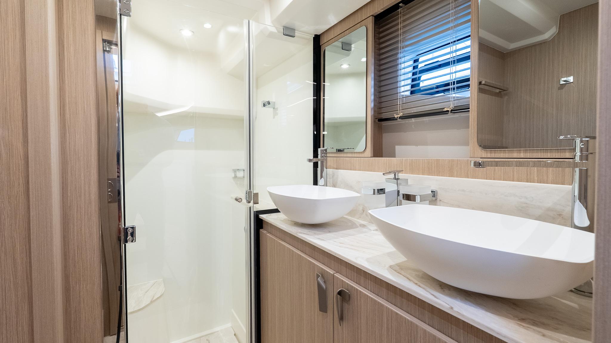Inspired by the movement of water, the elegant, fluid exterior lines of the hull of the F4.9 marry perfectly with the polished surfaces of living spaces, reflecting an abundance of natural light. Curves have been meticulously studied to confer softness, refinement, and power to the whole. The exterior and interior furnishings have been reinvented to offer exceptional comfort for all on board. Particular attention has been paid to the selection of new materials, such as natural stone, sculpted woodwork, and wicker. Designed by Garroni Design, the F4.9 heralds the design of future models of the F-Line, featuring even greater comfort and an exceptional level of finish.