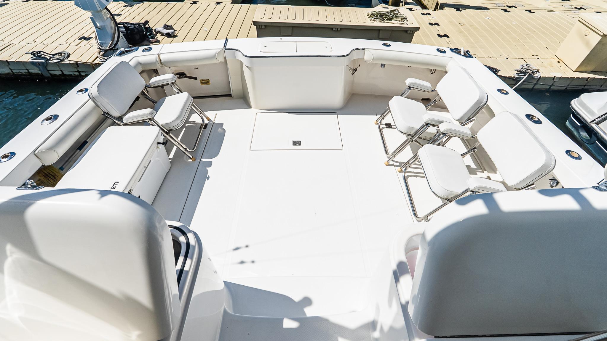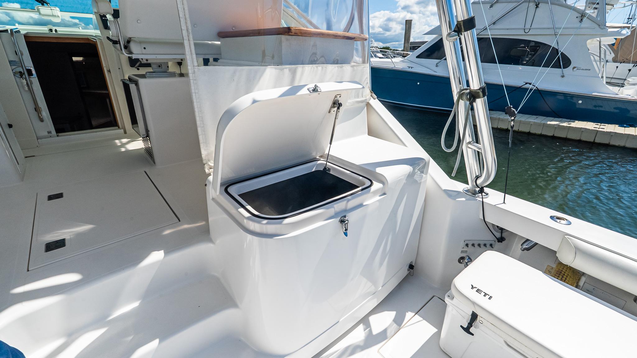 COCKPITThe massive cockpit is a fisherman's dream. There are two large-capacity, insulated fish boxes equipped with macerators and a bait prep center including a sink, rigging board and plenty of tackle and rod storage. An optional 48-gallon bait tank is molded into the transom.