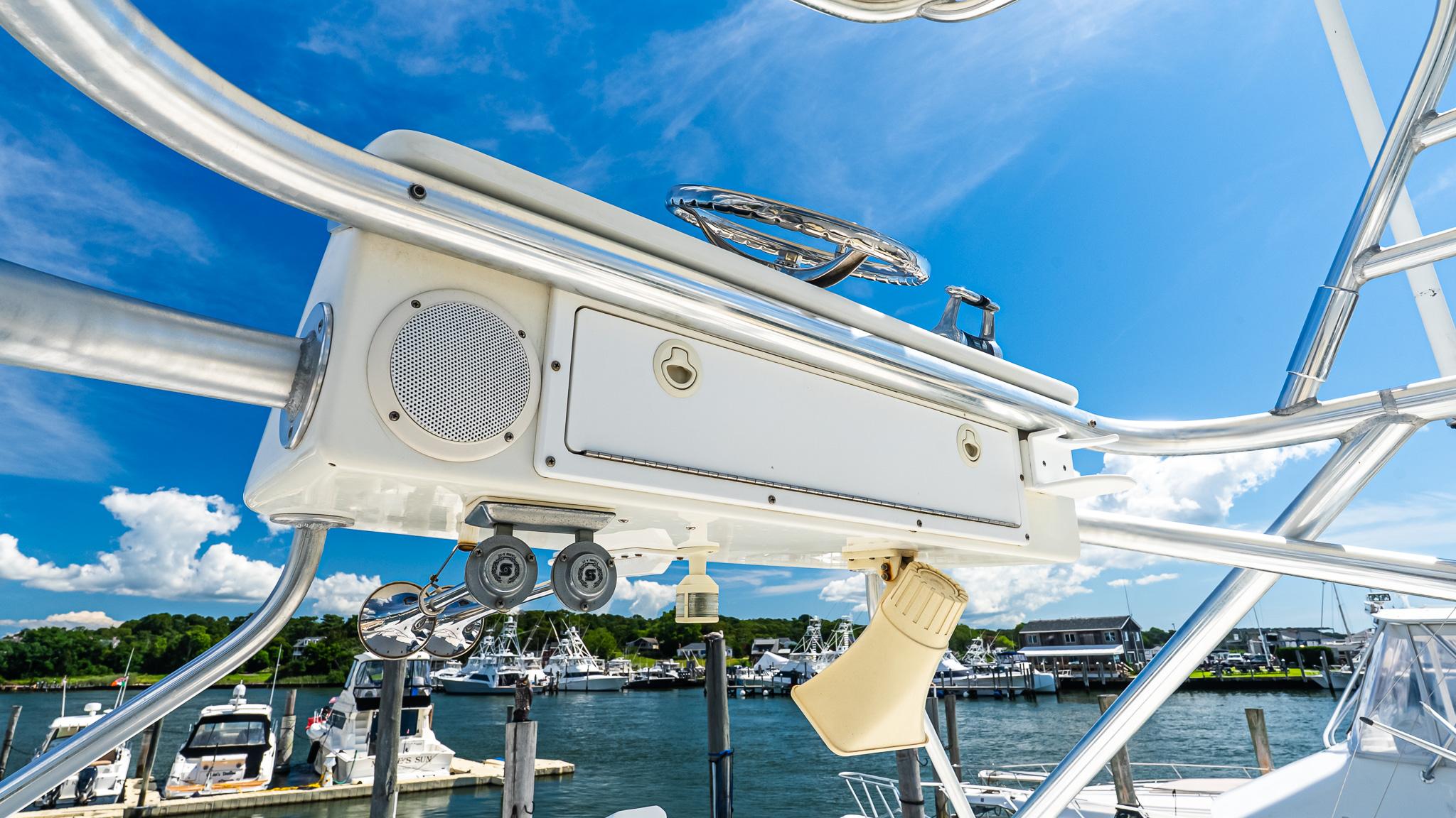 ELECTRONICS/HELM CONSOLEThe raised helm console provides outstanding visibility and is well equipped with an array of Navigational electronics.