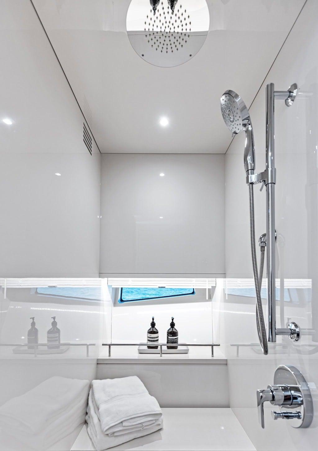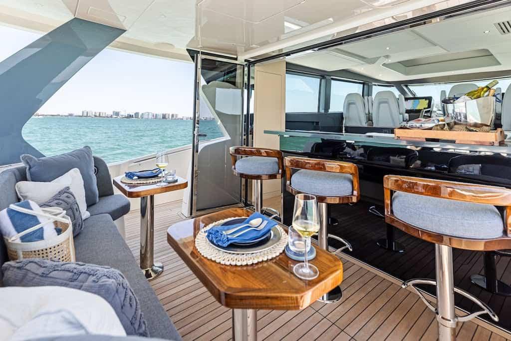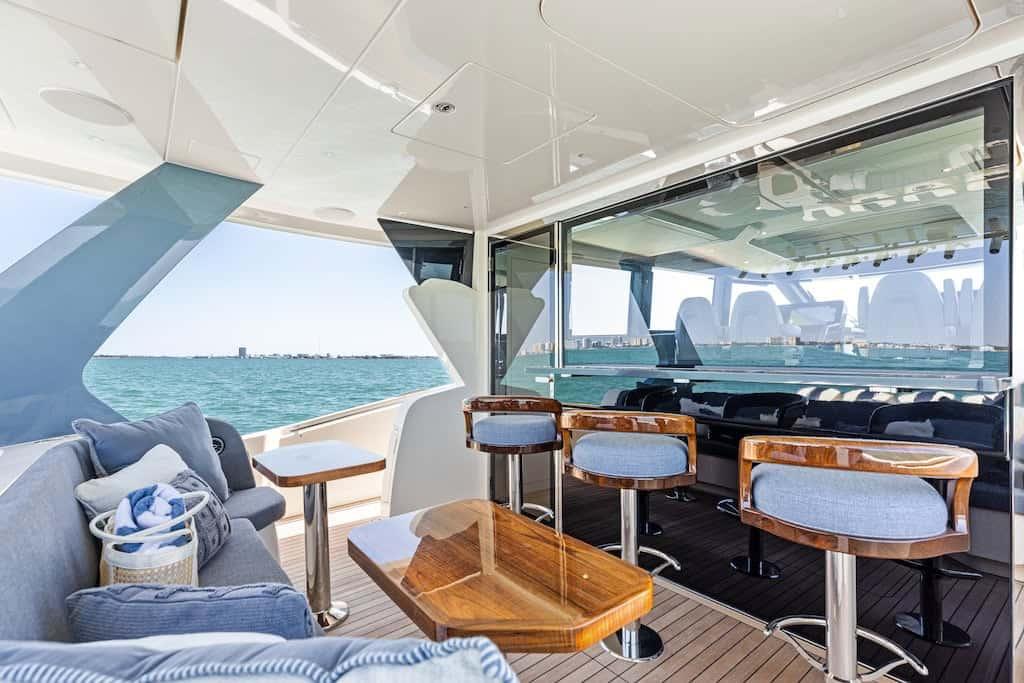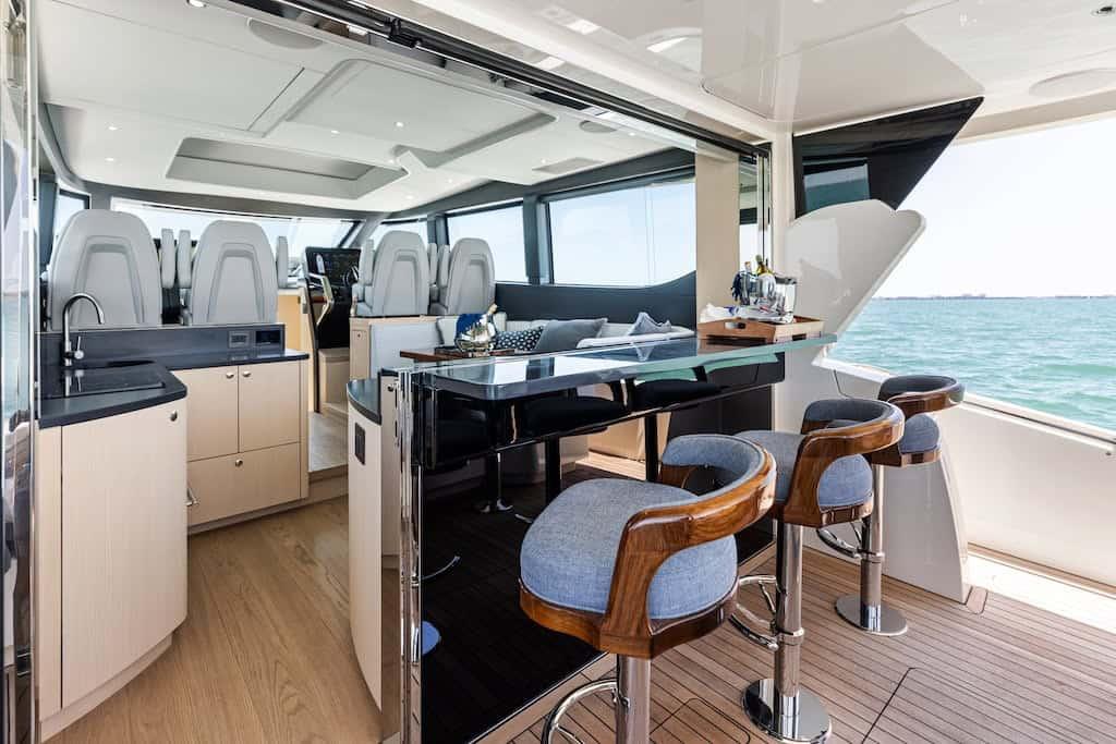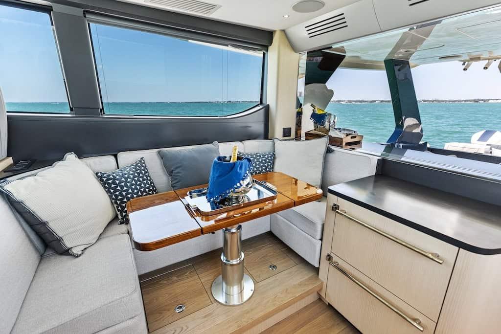 1. Atrium-style salon with natural light from overhead skylights and hull-side windows
