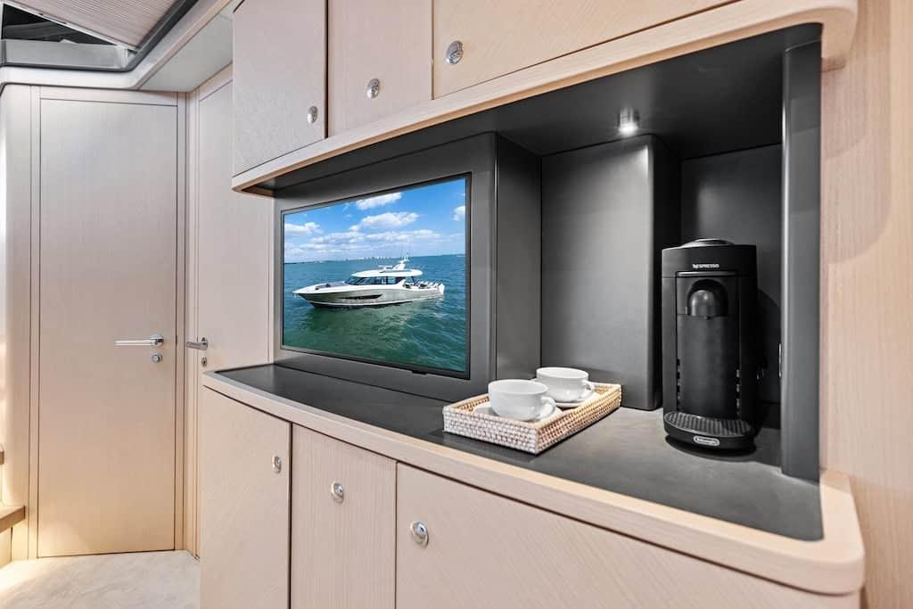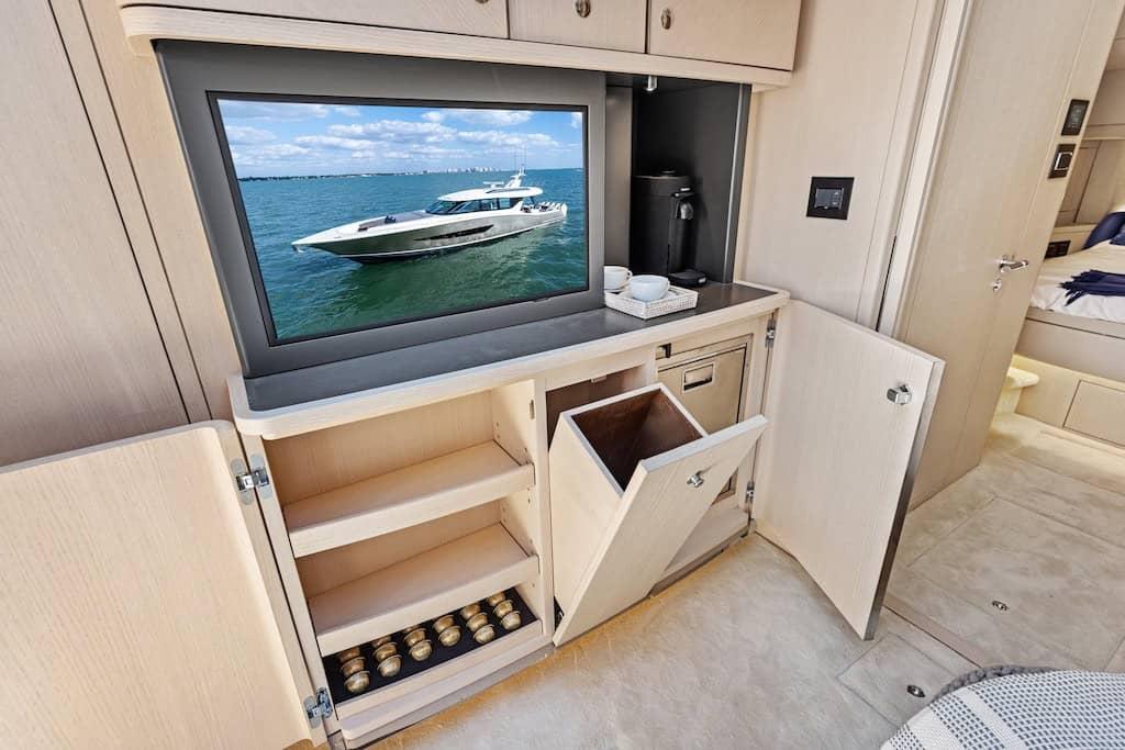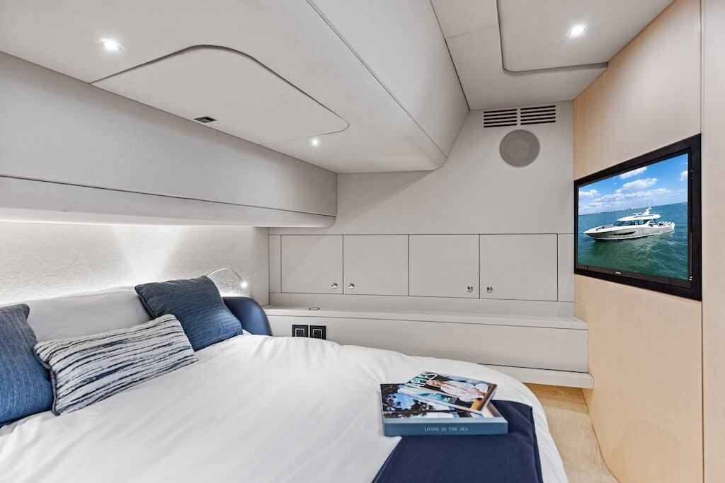 5. Master suite with queen berth, hanging lockers, Smart TV