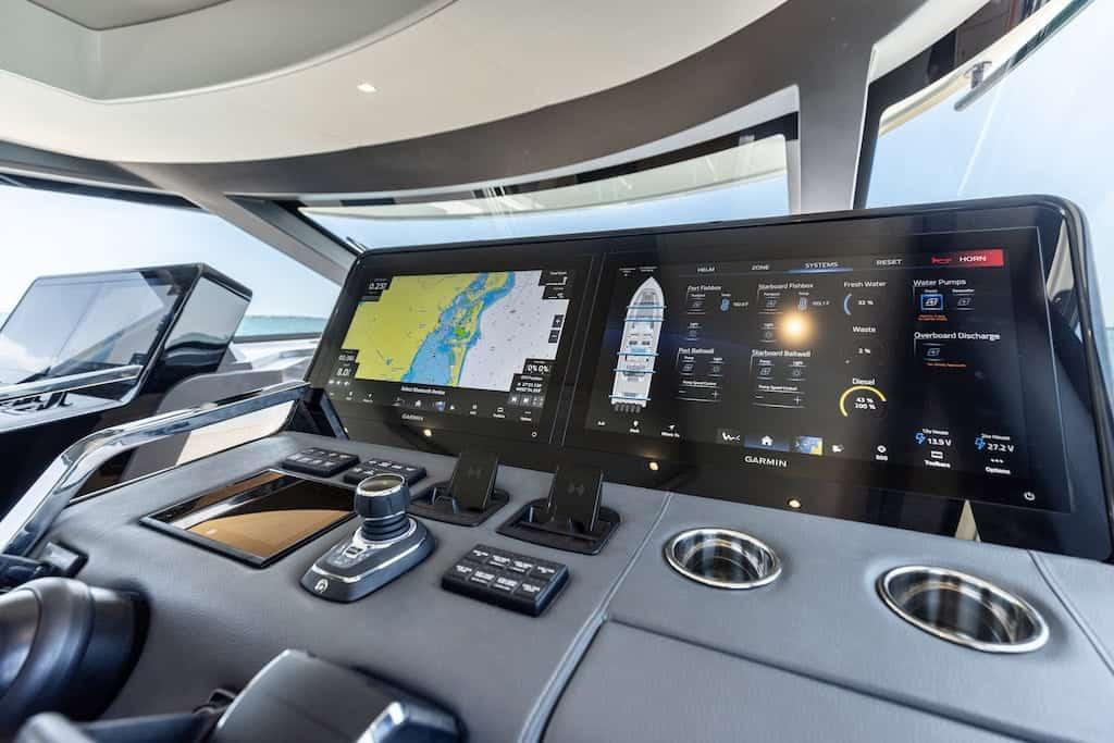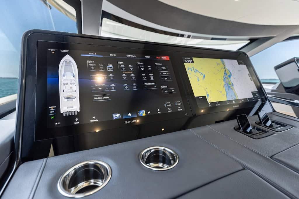 1. Four Garmin 22” multifunction displays at dual-console helm