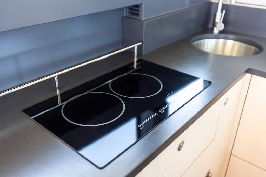 4. Full galley with cooktop, microwave, fridge/freezer drawers