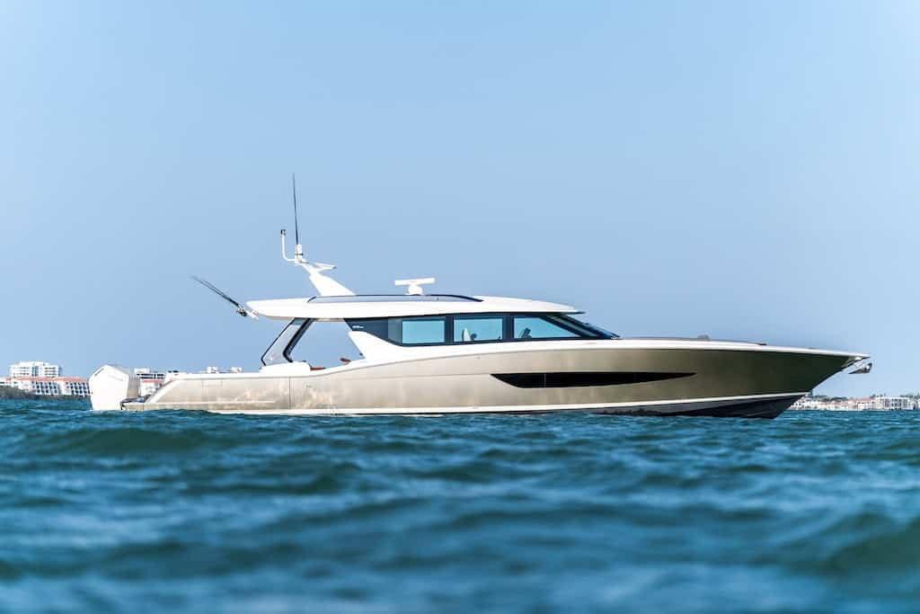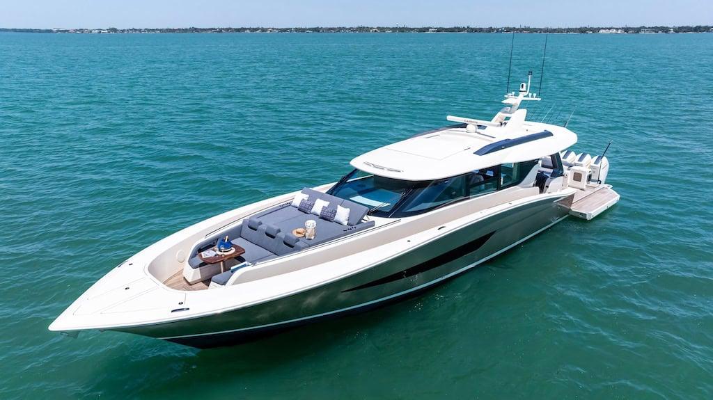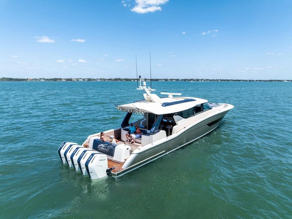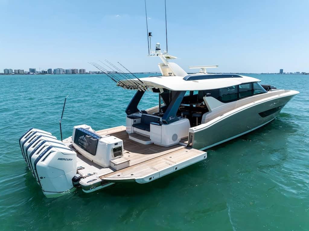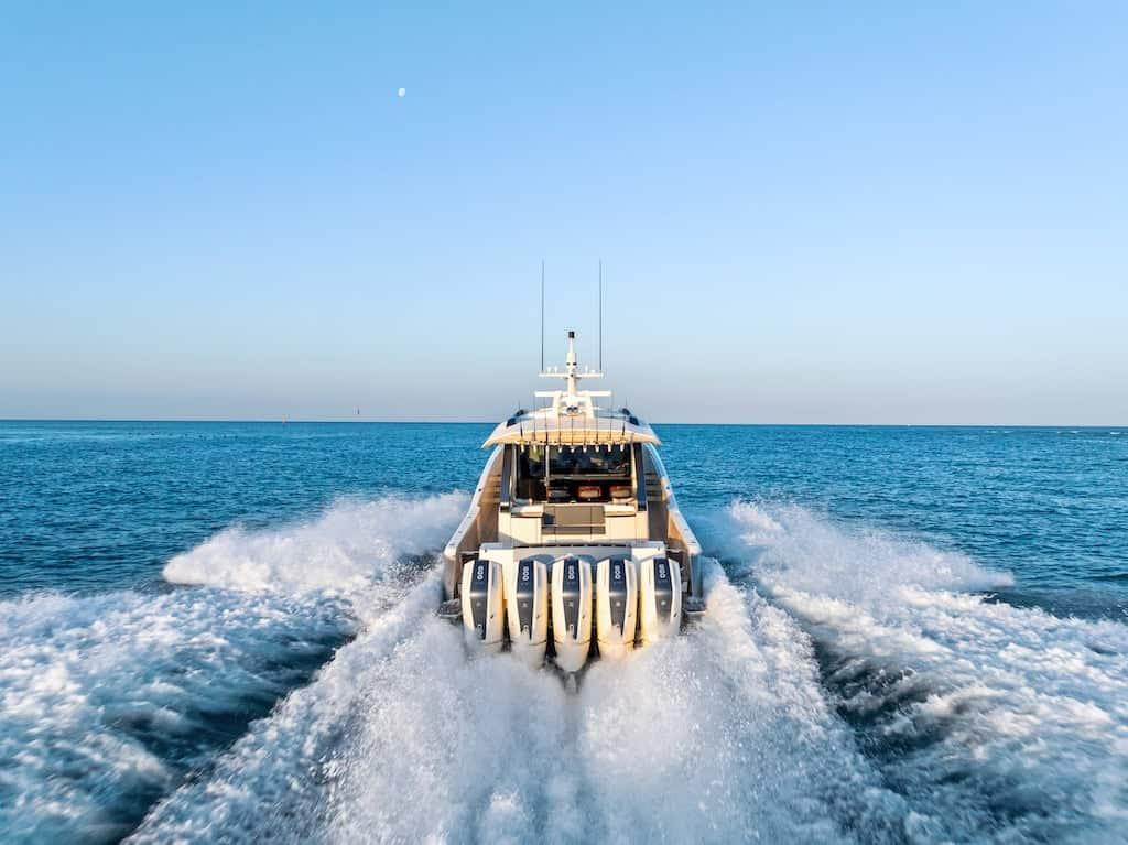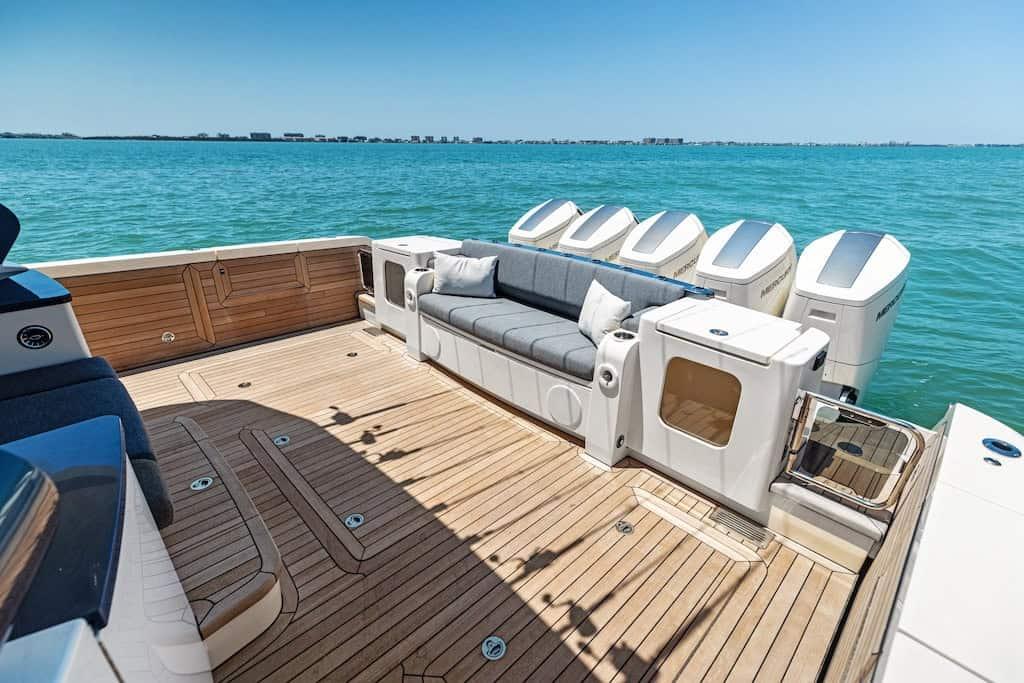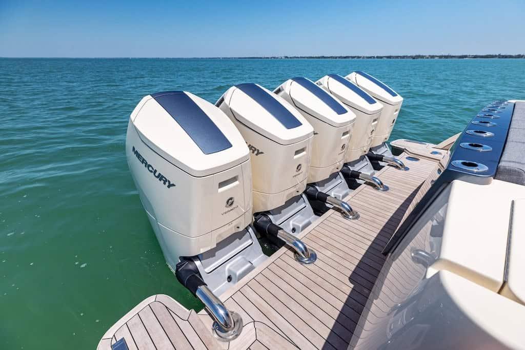 1. Five Mercury Verado 600 V12 outboards, custom-painted in Pearl Fusion White