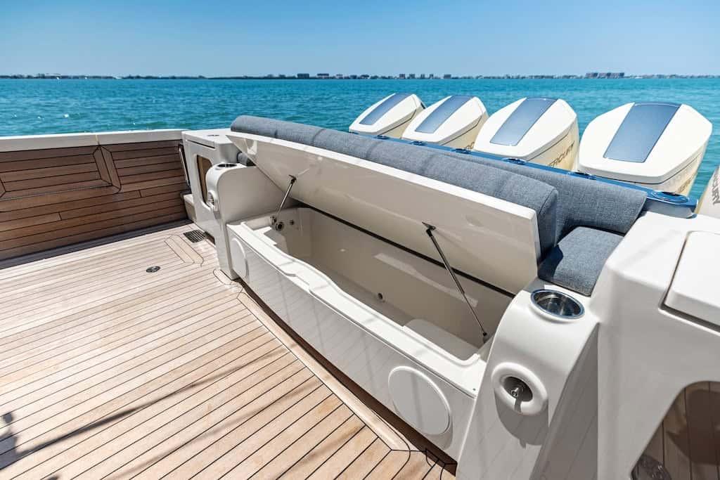 1. Versatile transom layout with twin 20-gallon baitwells and 60-gallon center livewell