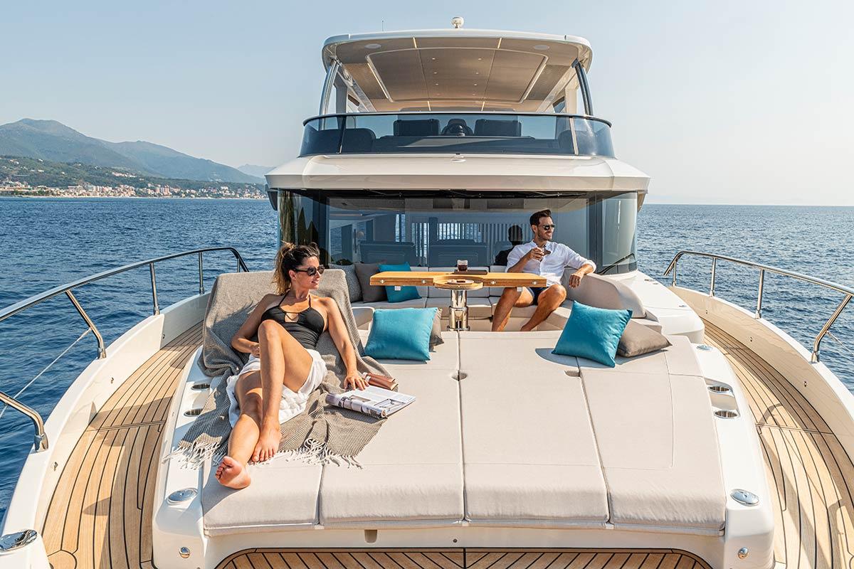 Every detail of the Absolute Navetta 70 expresses the allure of a completely new model, starting from the dynamic and captivating appearance of the exteriors: the flybridge and cockpit terrace are much larger compared to those of other similar yachts. From the spacious terrace cockpit at the stern, where there is a third mooring station, a covered staircase leads up to the flybridge. Here one can enjoy moments of relaxation and socializing, taking advantage of the shade offered by the hard top, which can assume two distinct configurations depending on the customization chosen. It can, in fact, be openable if one opts for coverage through a sunshade, or fixed if one prefers the addition of solar panels, which are lightweight, efficient, flexible, and resistant to the effects of salt water. The interior features an open layout with a spacious kitchen. There are five cabins, each have large windows allowing serene views of the sea. High ceilings throughout the boat allow for a sophisticated design of the living spaces.