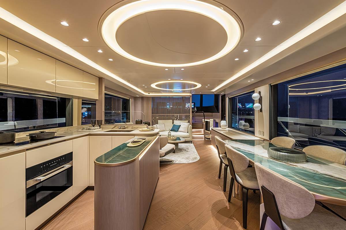 Experience the allure of a totally new design concept in which contemporary style and performance offer the ultimate experience of the sea on board the 70' Absolute Navetta.