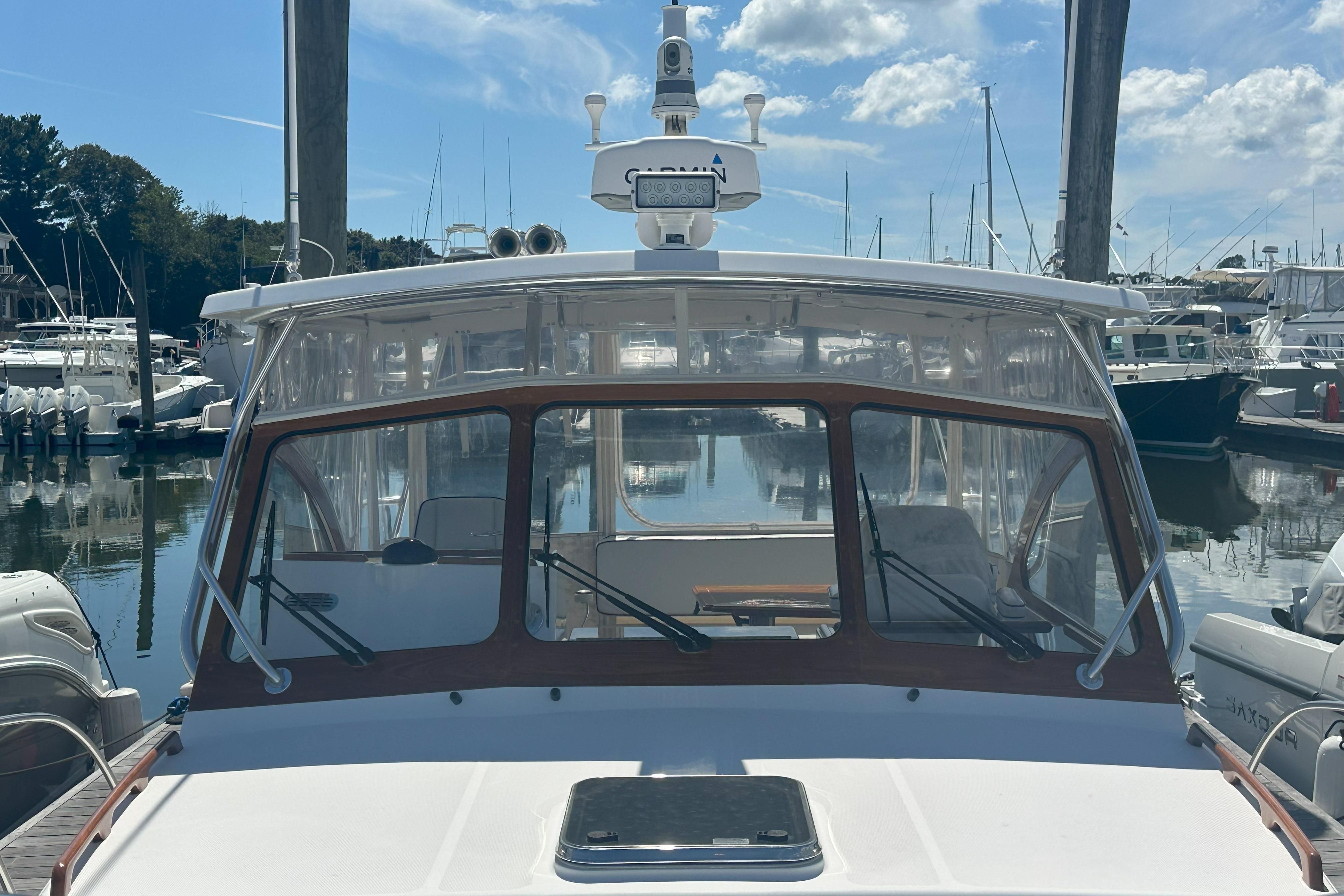 A REAL CLEAN VESSEL TWIN VOLVO 225 HP D-4 DIESEL POWER-- WITH 302 HOURS-- HARDTOP WITH ENCLOSURE--- FULL ELECTRONICS INCLUDING FLIR NIGHT VISIONThe new Fortier 30 is an honest boat for fishing and more extended cruising. A proven design by Eldridge-McInnis, she is an outstanding fiberglass boat. Her design and construction make the Fortier 30 comfortable in any weather. The molded in keel and spray rails offer exceptional stability and gives the boat a soft, dry entry into the water.The construction of the Fortier 30 is unique to the industry in that experienced craftsmen have laid layers of fiberglass over a Core-Cell foam core. The result is a very quiet ride, while insulating her against the contrasting cold water temperatures and warm air temperature. The stringers run from bulkhead to transom. The quality of materials and workmanship make the Fortier 30's the stiffest hull in her class. The Fortier 30, like it's little sister the Fortier 26, and its bigger brother the Fortier 33, is a combination of both boats. The new Fortier 30 has a large cockpit, approximately the same size as the Fortier 33. The redesigned, opening port windows adds classic Down East looks similar to the iconic Fortier 26.Whether your goal is fishing or cruising or both, the large open cockpit lends itself to customizing in order to satisfy any owner's individual needs!
