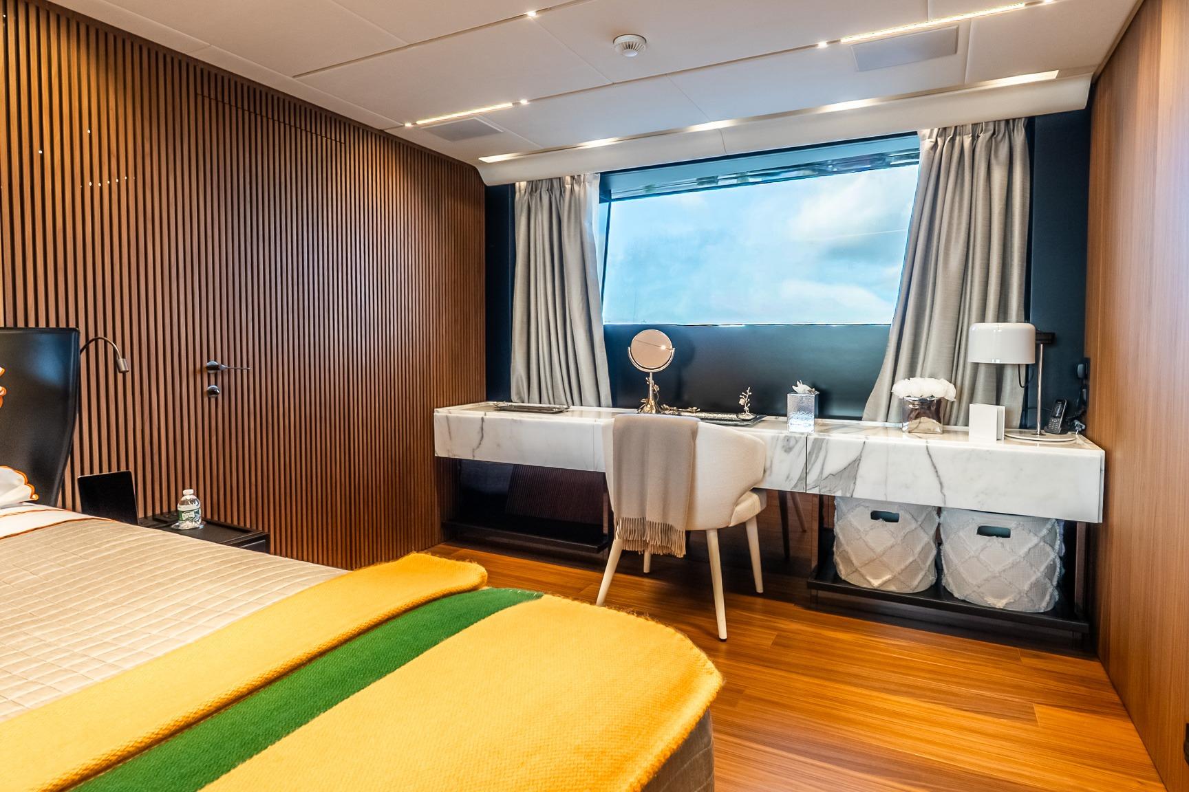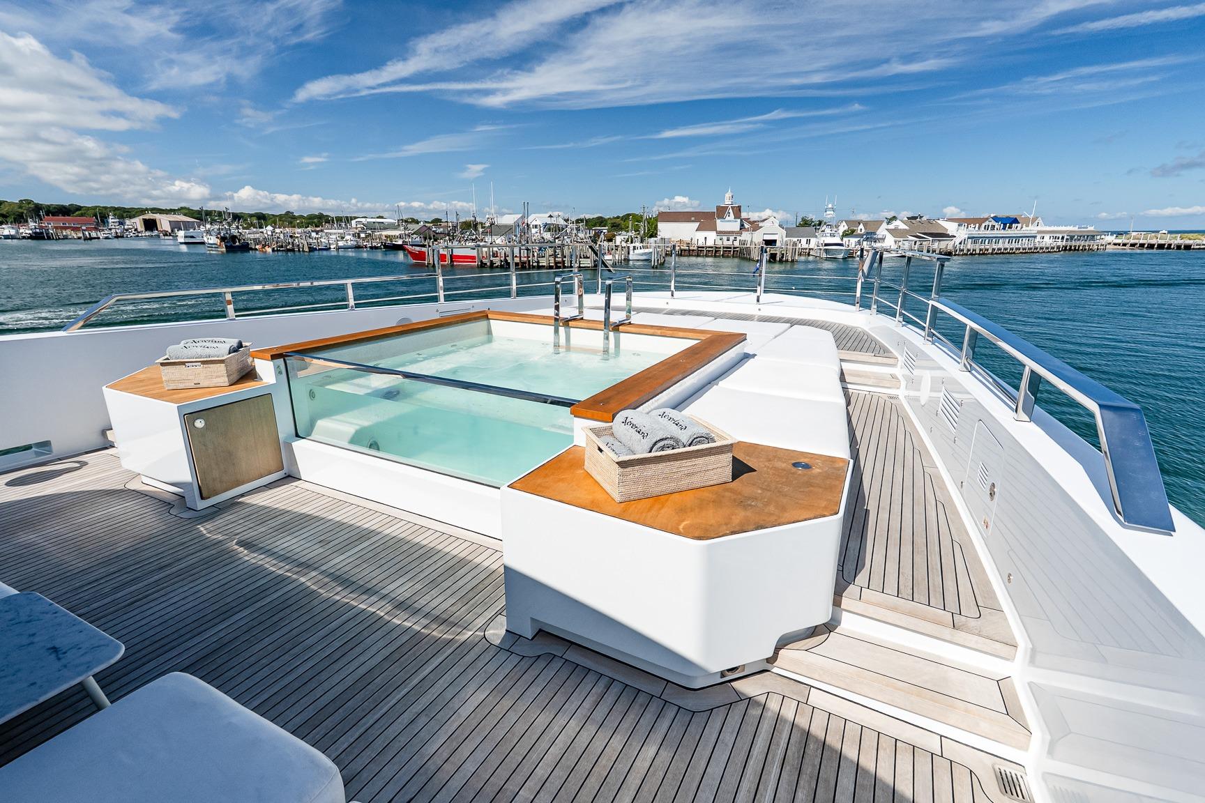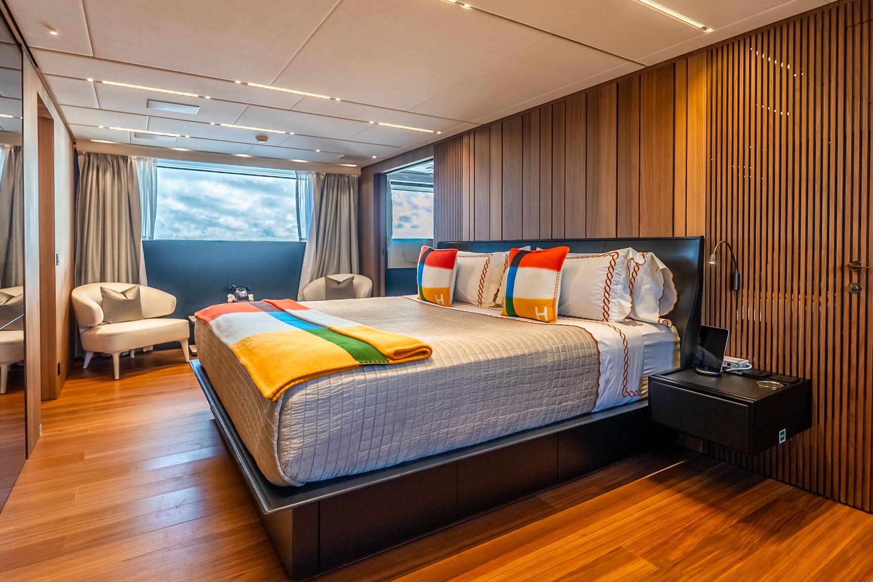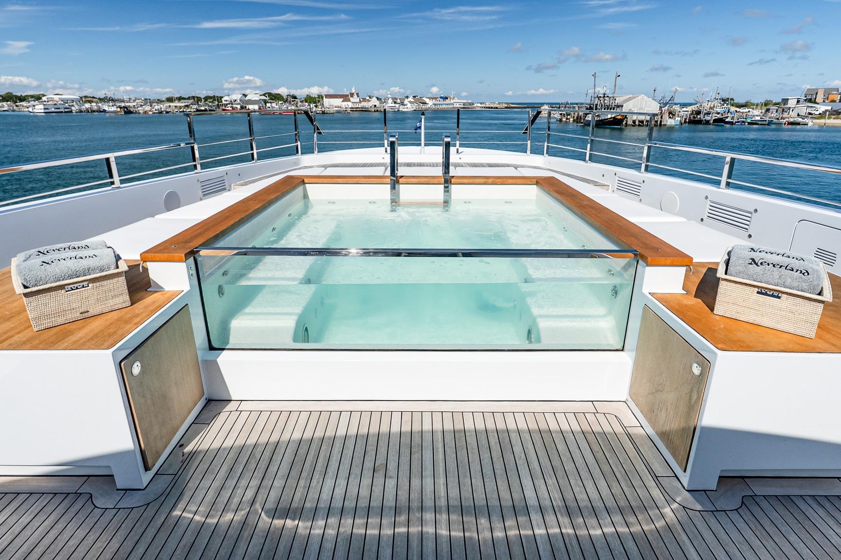 "Neverland" offers on-deck jacuzzi & sun lounge for the ultimate relaxation with panoramic views. "Neverland" offers a class-leading two-level master suite with a luxurious ensuite head and walk-in closet that is sure to impress.