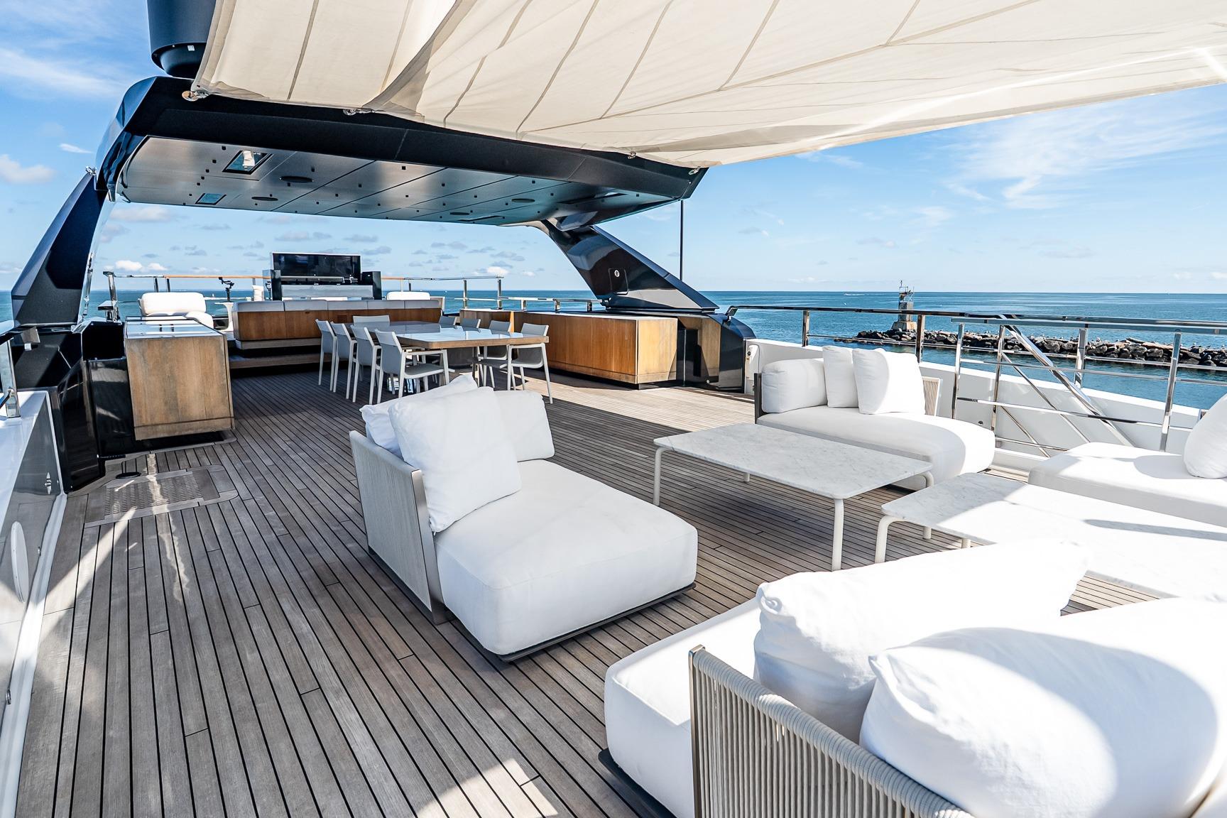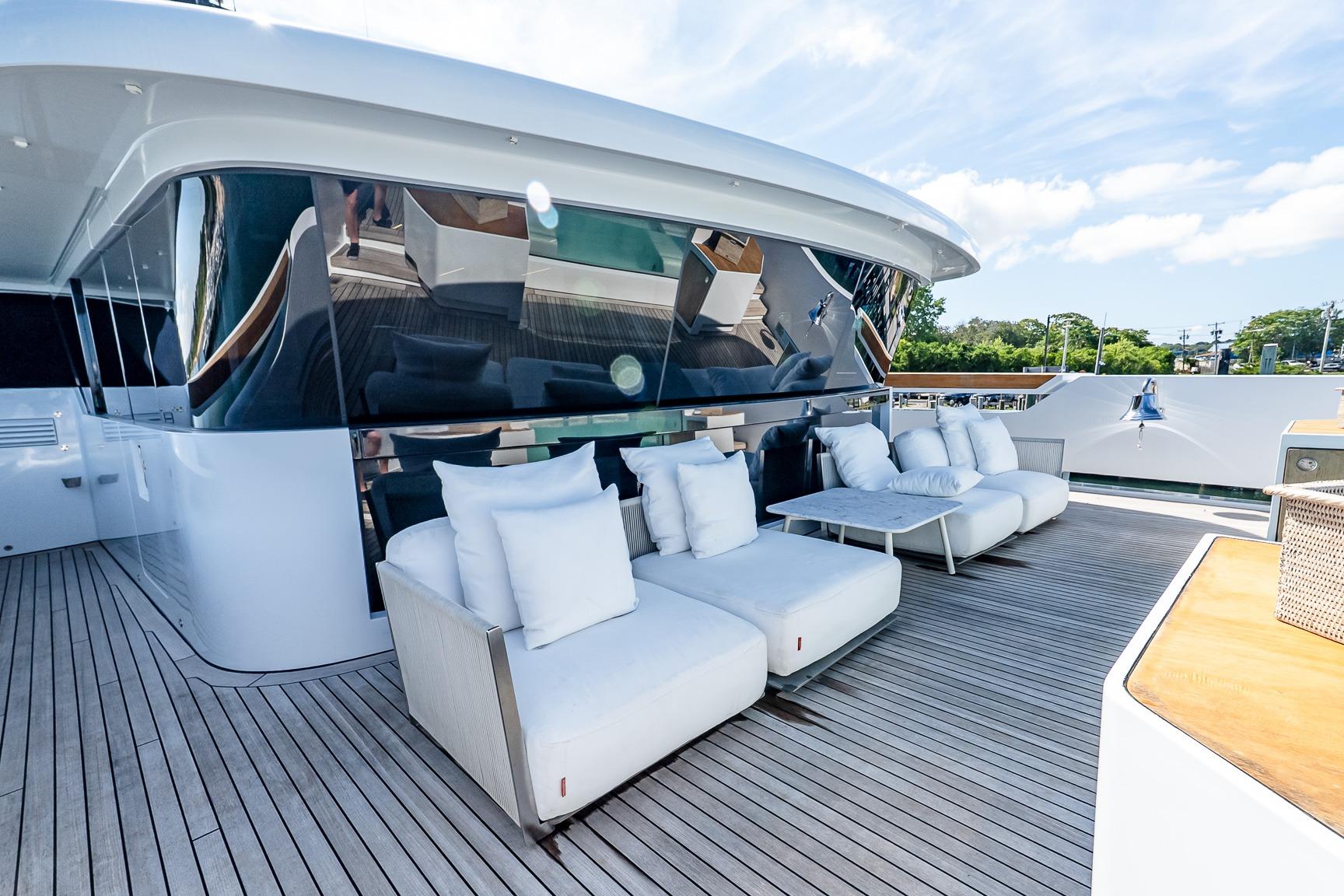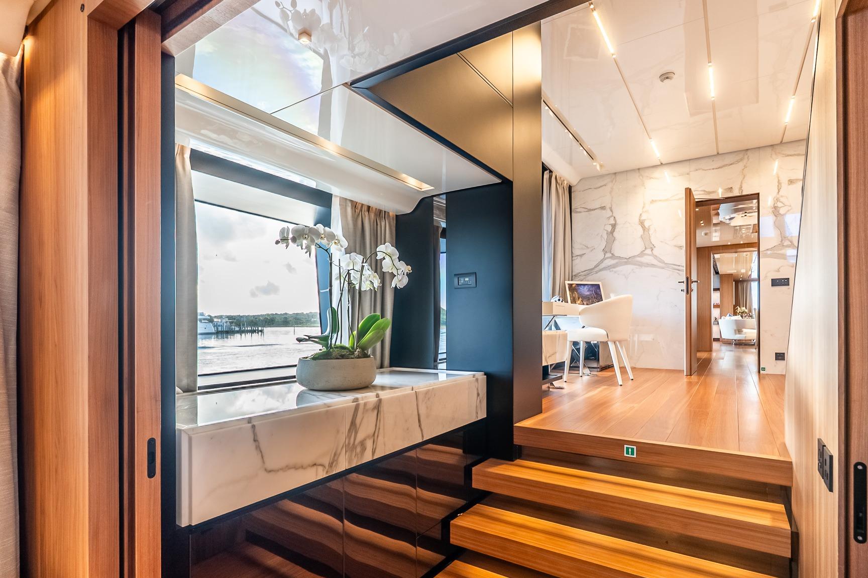 "Neverland" offers on-deck jacuzzi & sun lounge for the ultimate relaxation with panoramic views. "Neverland" offers a class-leading two-level master suite with a luxurious ensuite head and walk-in closet that is sure to impress.