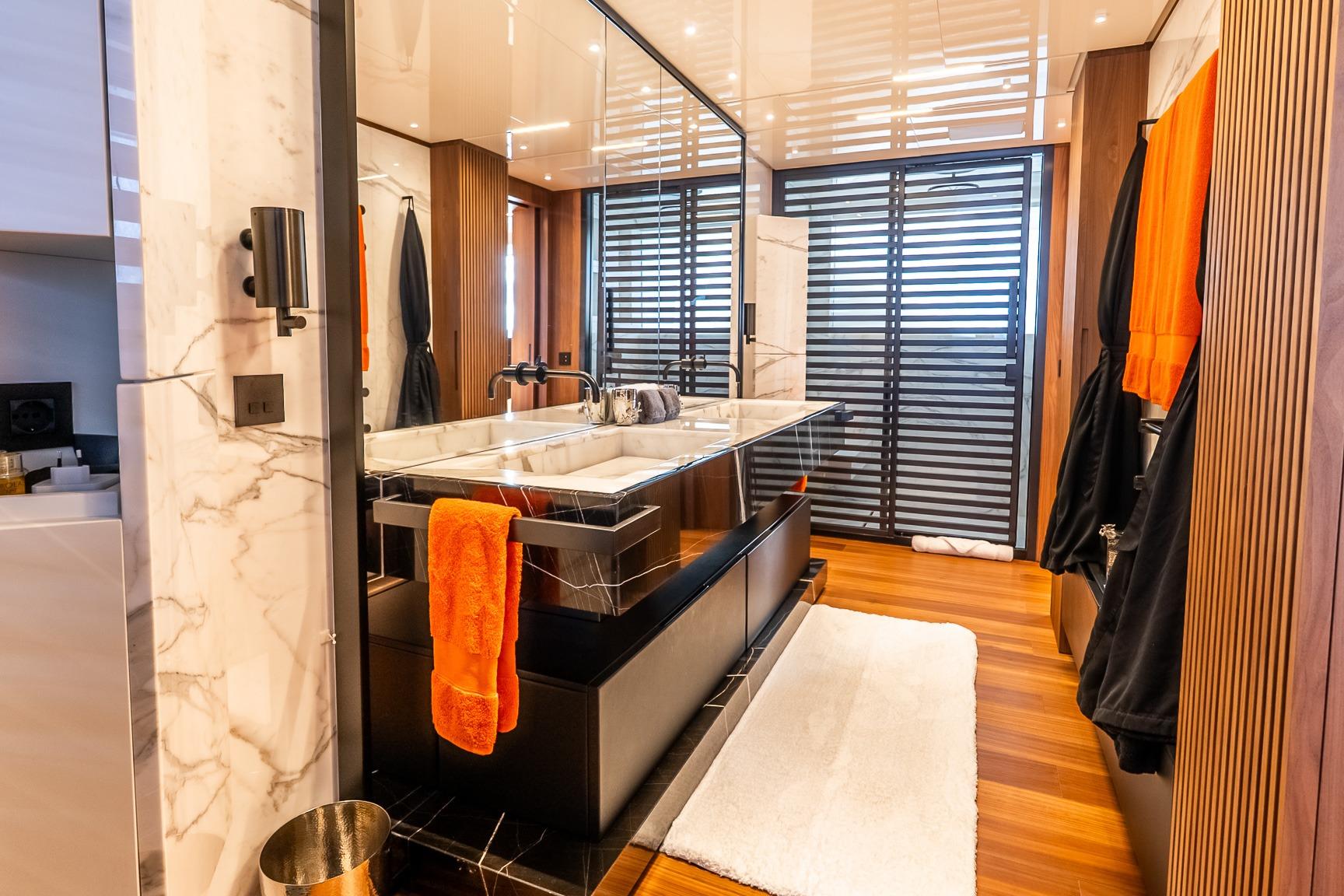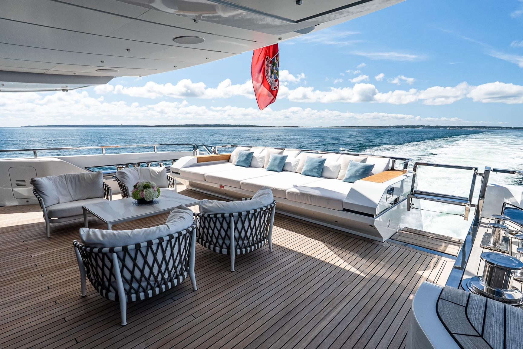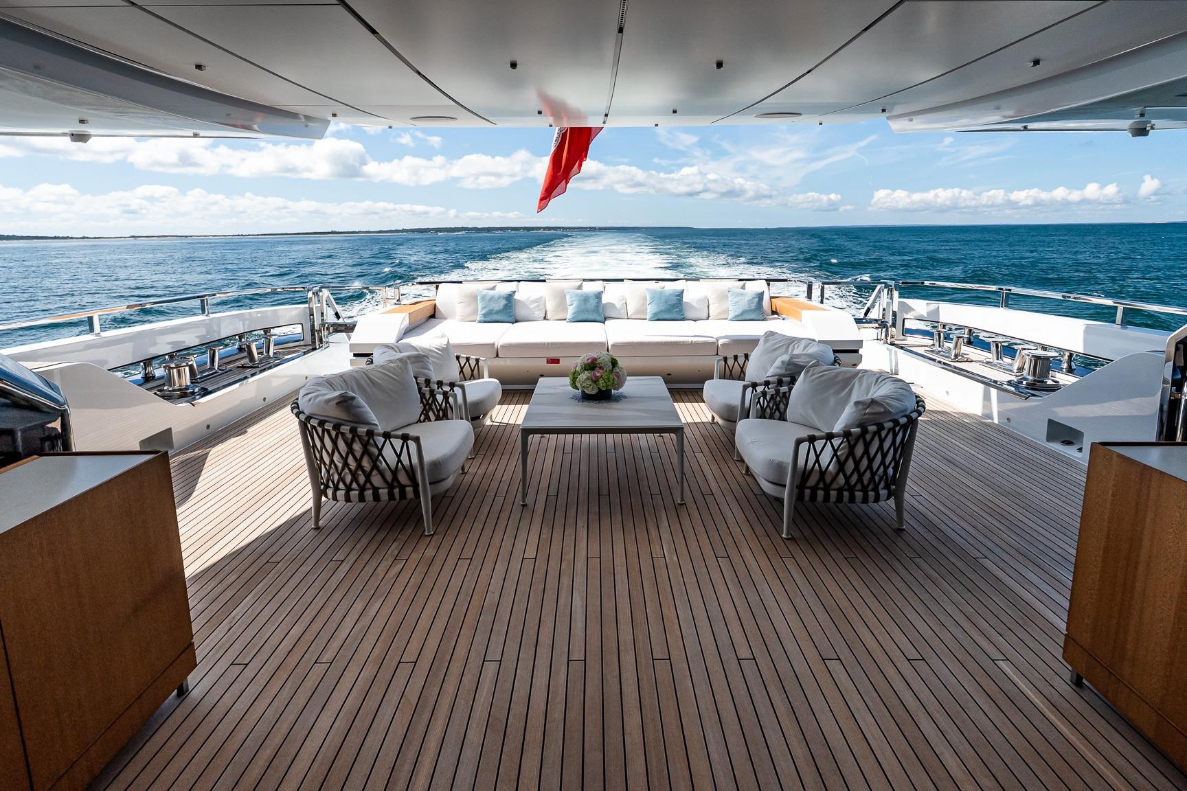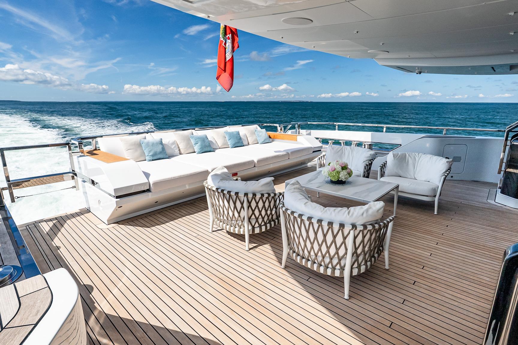 "Neverland" offers on-deck jacuzzi & sun lounge for the ultimate relaxation with panoramic views. "Neverland" offers a class-leading two-level master suite with a luxurious ensuite head and walk-in closet that is sure to impress.
