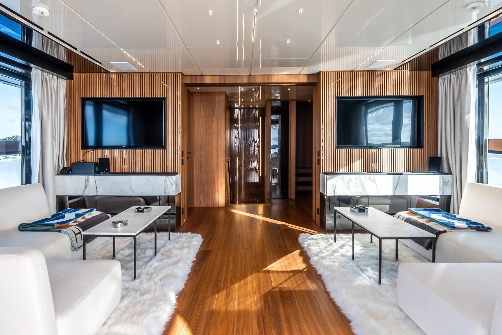 "Neverland's" blend of cutting-edge interior design, uncompromising performance, and seamless outdoor living space that offers tri-deck and beach club with fold-down balconies creates the ultimate entertaining space.
