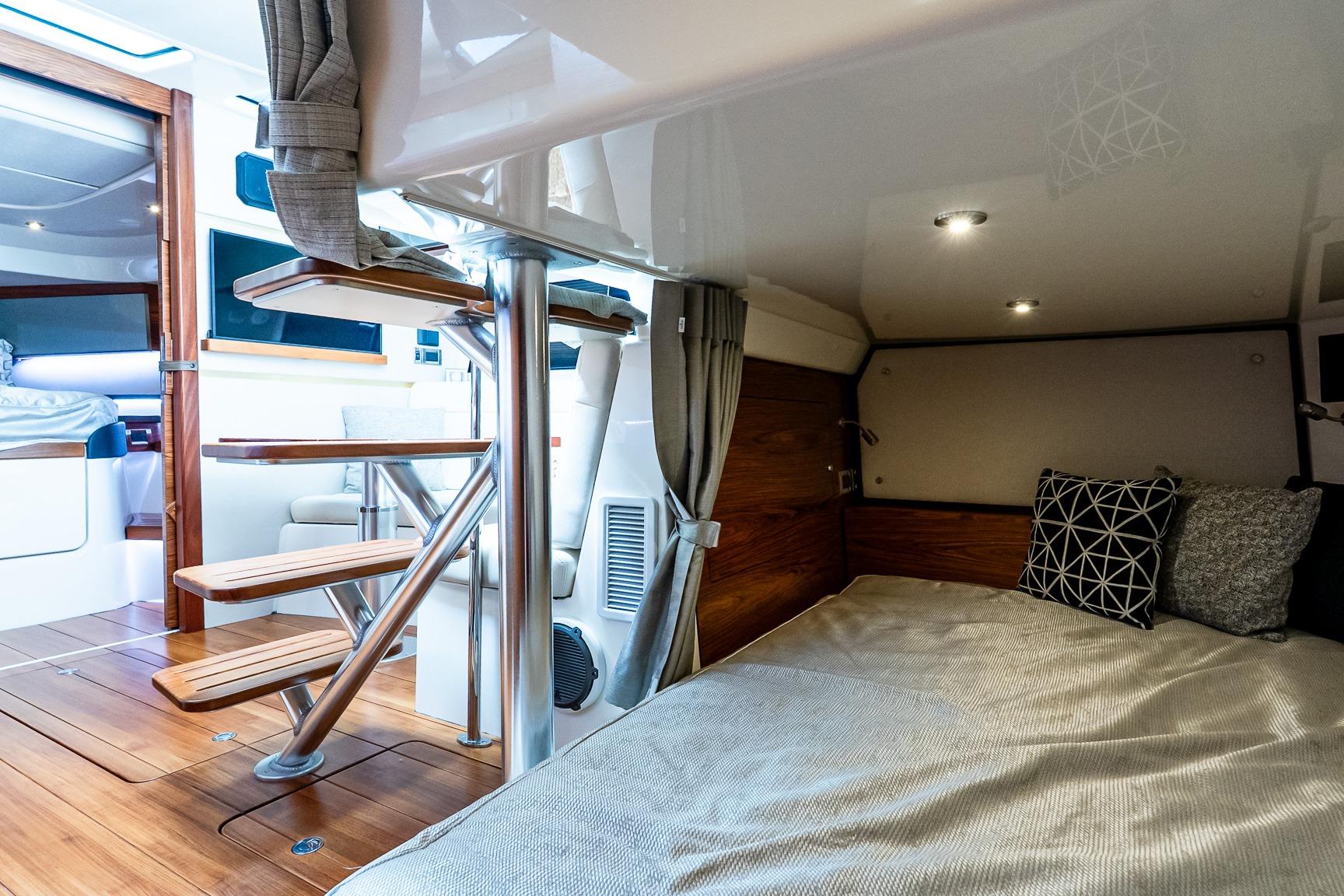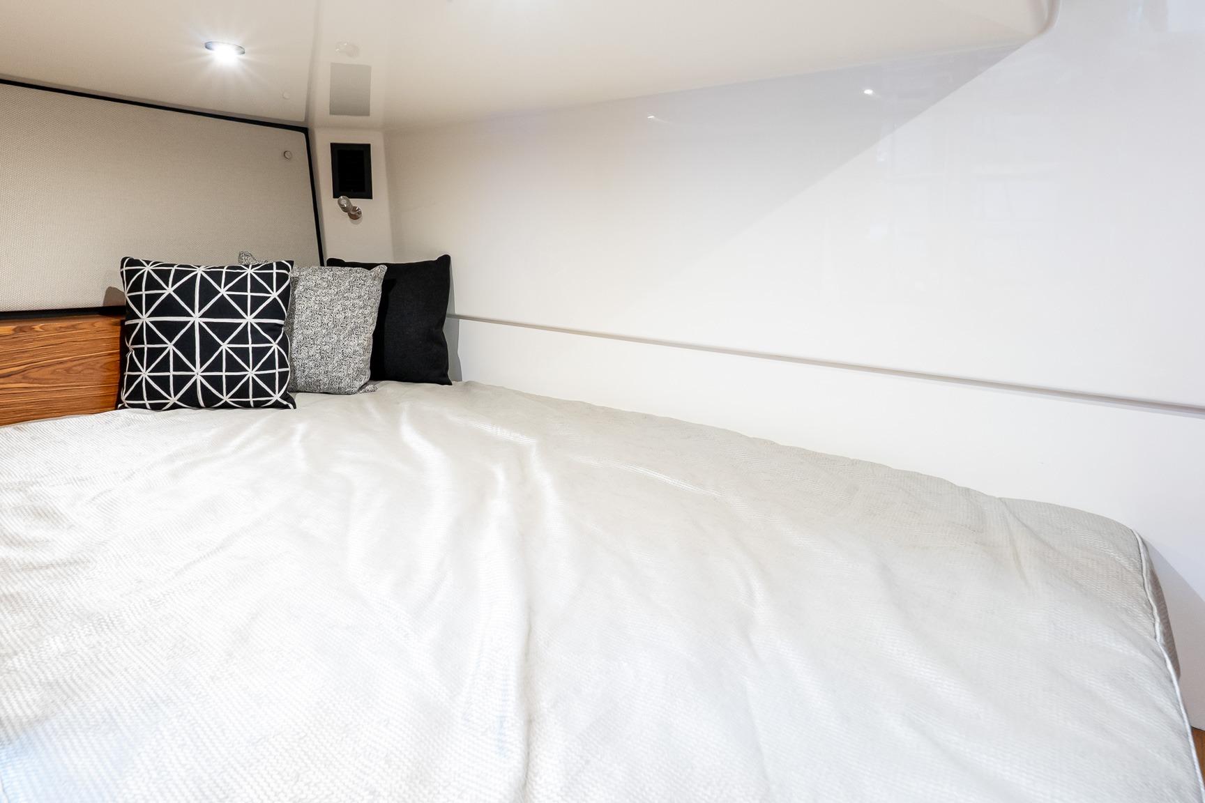 MASTER STATEROOM- JL Audio hidden sub enclosure with JL Audio amplification hidden under v-berth