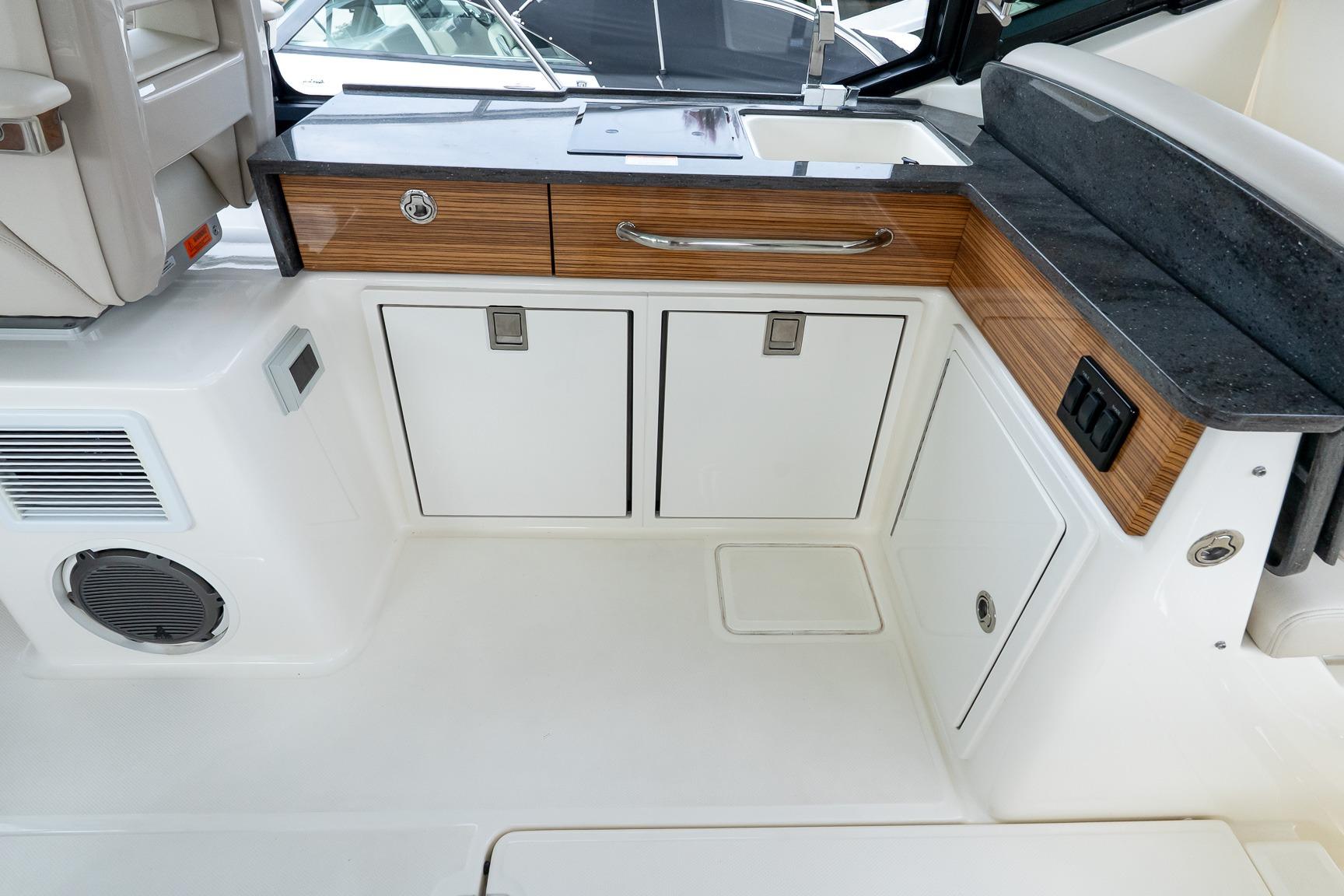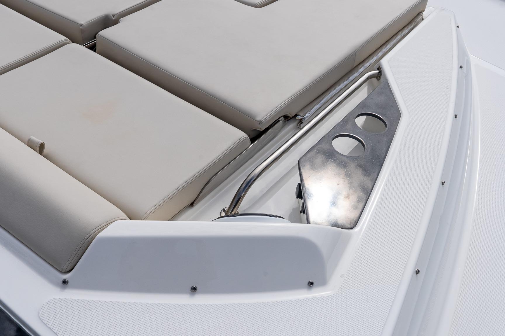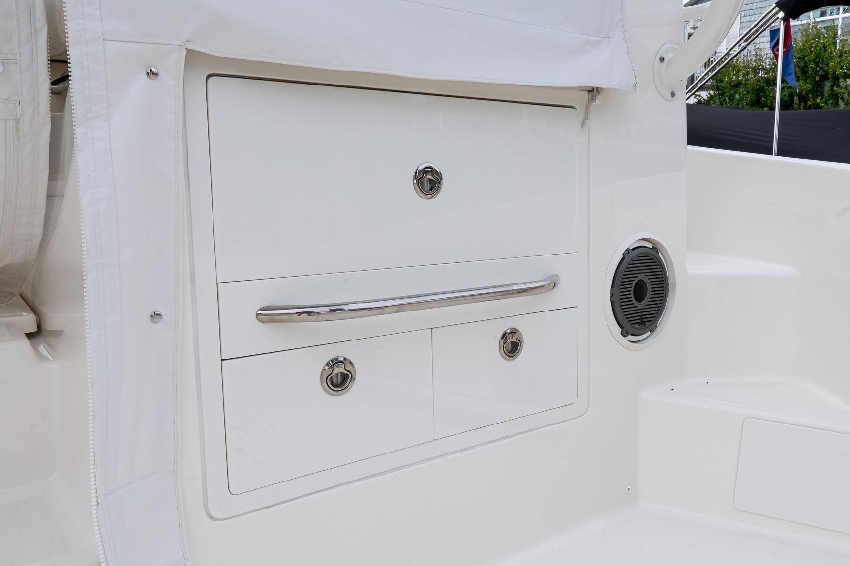 BOW - JL M6 6.5” coax classic white/Gun metal grill in bow lounge area. COCKPIT - JLAudio M6 8.8" coax, classic white/gunmetal grill (2) custom recessed mounted in deck on port and starboard side