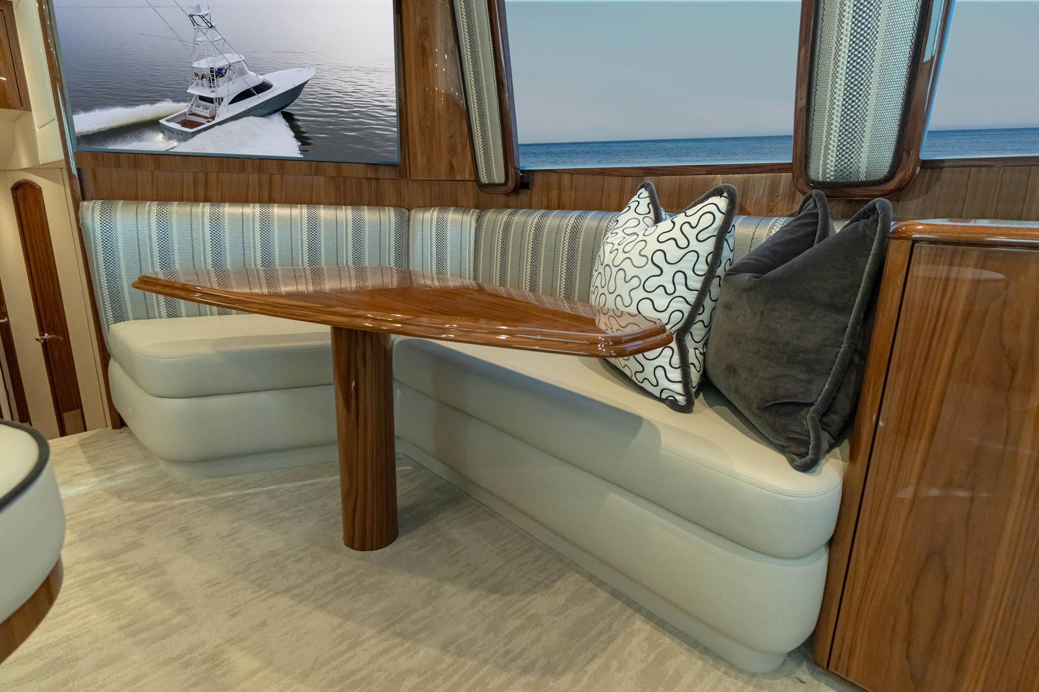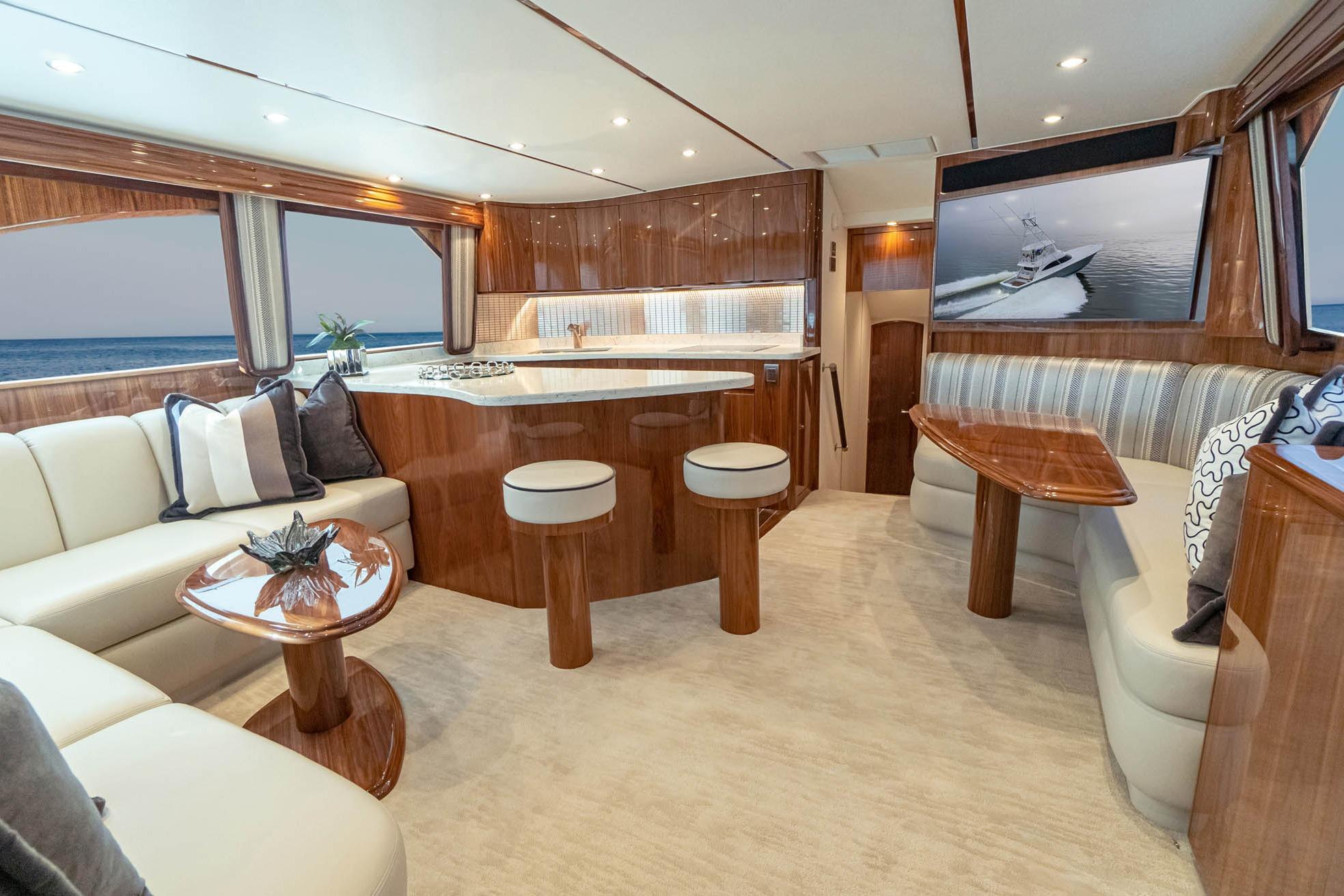 The Viking 54 Convertible salon and galley are designed for relaxation after a long day offshore.